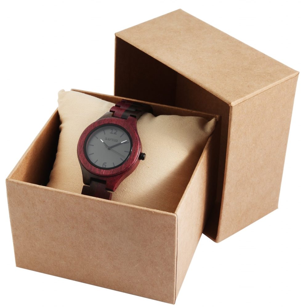 Relógio feminino de madeira da marca Raptor, pulseira de madeira com fecho dobrável em aço inoxidável, display analógico, vidro mineral especialmente endurecido que protege o mostrador de influências externas. Ótima ideia de presente para qualquer ocasião
