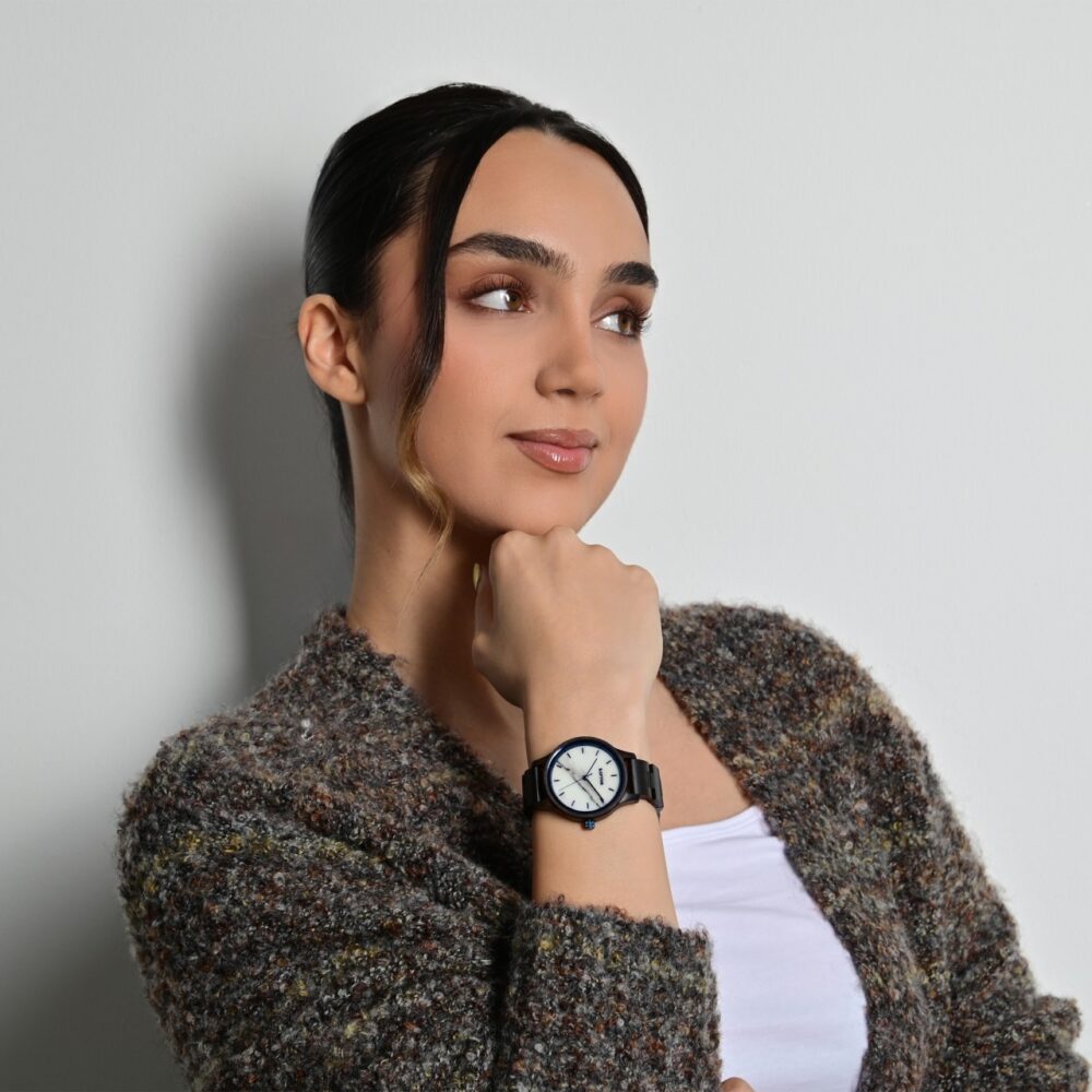 O relógio de pulso feminino analógico de 3 ponteiros da marca Raptor possui o movimento de quartzo Miyota GL30 de alta qualidade. A pulseira de madeira tem 16 mm de largura na alça e pode ser aberta e fechada com um fecho dobrável em aço inoxidável. O comprimento total do relógio é de 22 cm. A caixa de madeira com vidro mineral tem um diâmetro de 36 mm e uma altura de 11 mm. O fundo da caixa também é feito de madeira. Um destaque visual é a borda espelhada de 1 mm de largura no vidro mineral. Os ponteiros são feitos na mesma cor da borda do espelho e juntos conferem ao relógio um visual…