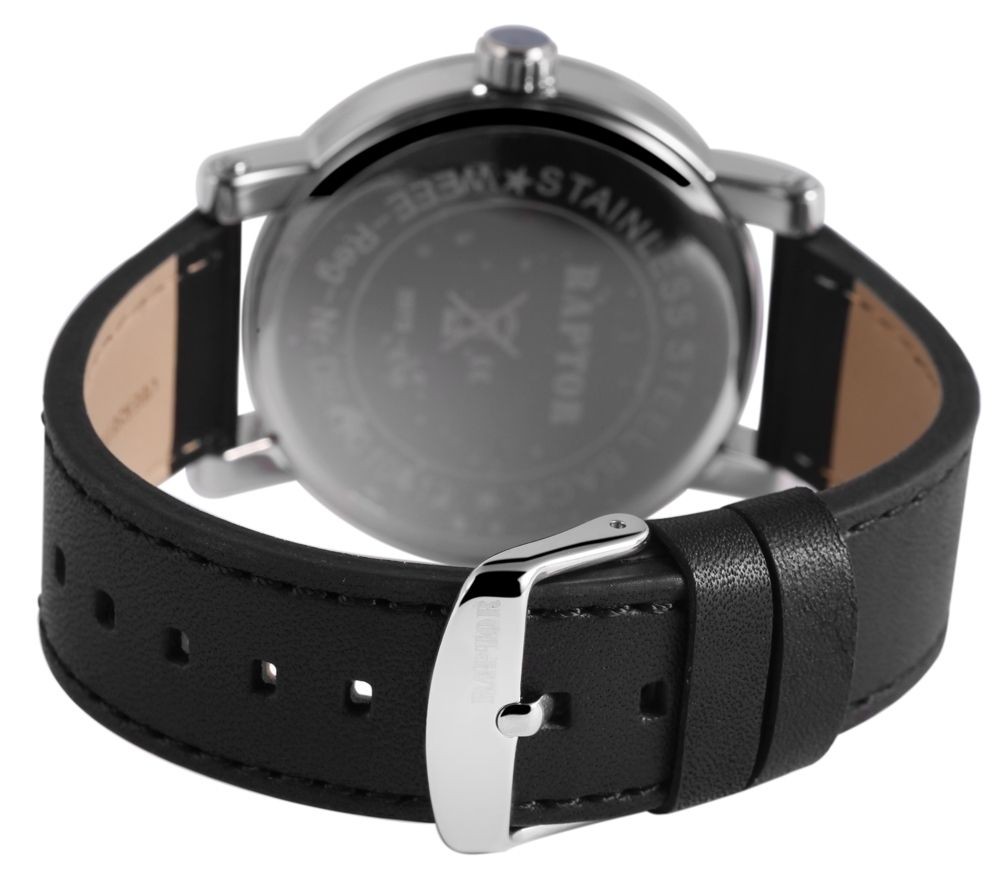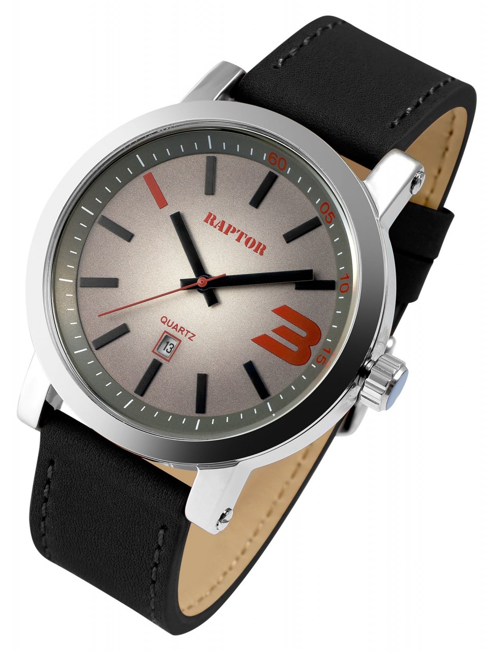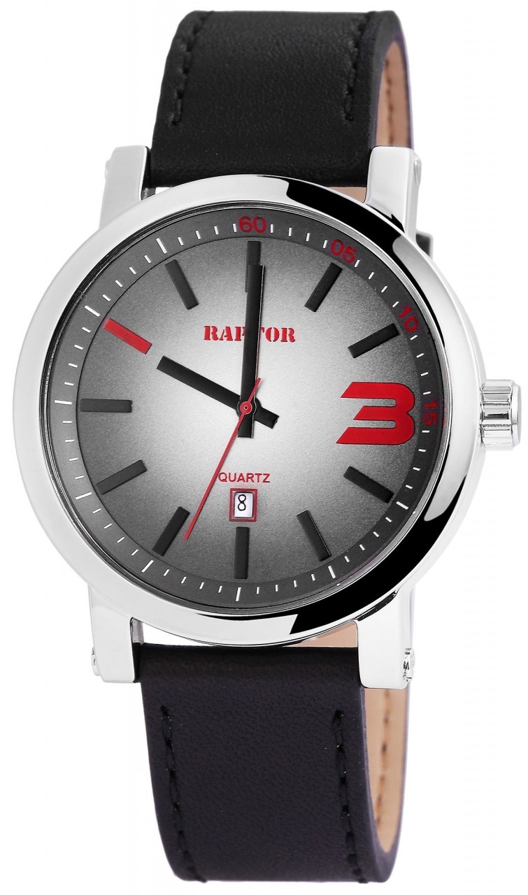 O relógio analógico masculino da marca Raptor possui um Miyota 2115. O nome do modelo é RA274. A pulseira superior em couro genuíno/parte inferior em imitação de couro tem 22 mm de largura e abre com uma fivela de pino. O comprimento total é de 24 cm. A caixa de aço inoxidável com vidro mineral tem dimensão de 46 mm e altura de caixa de 12 mm. A tampa da caixa é feita de aço inoxidável. O relógio é à prova de respingos. O relógio masculino Raptor possui os seguintes recursos: Exibição de data. Como acessórios para o seu produto você receberá: cartão de garantia, caixa original e manual do usuário.