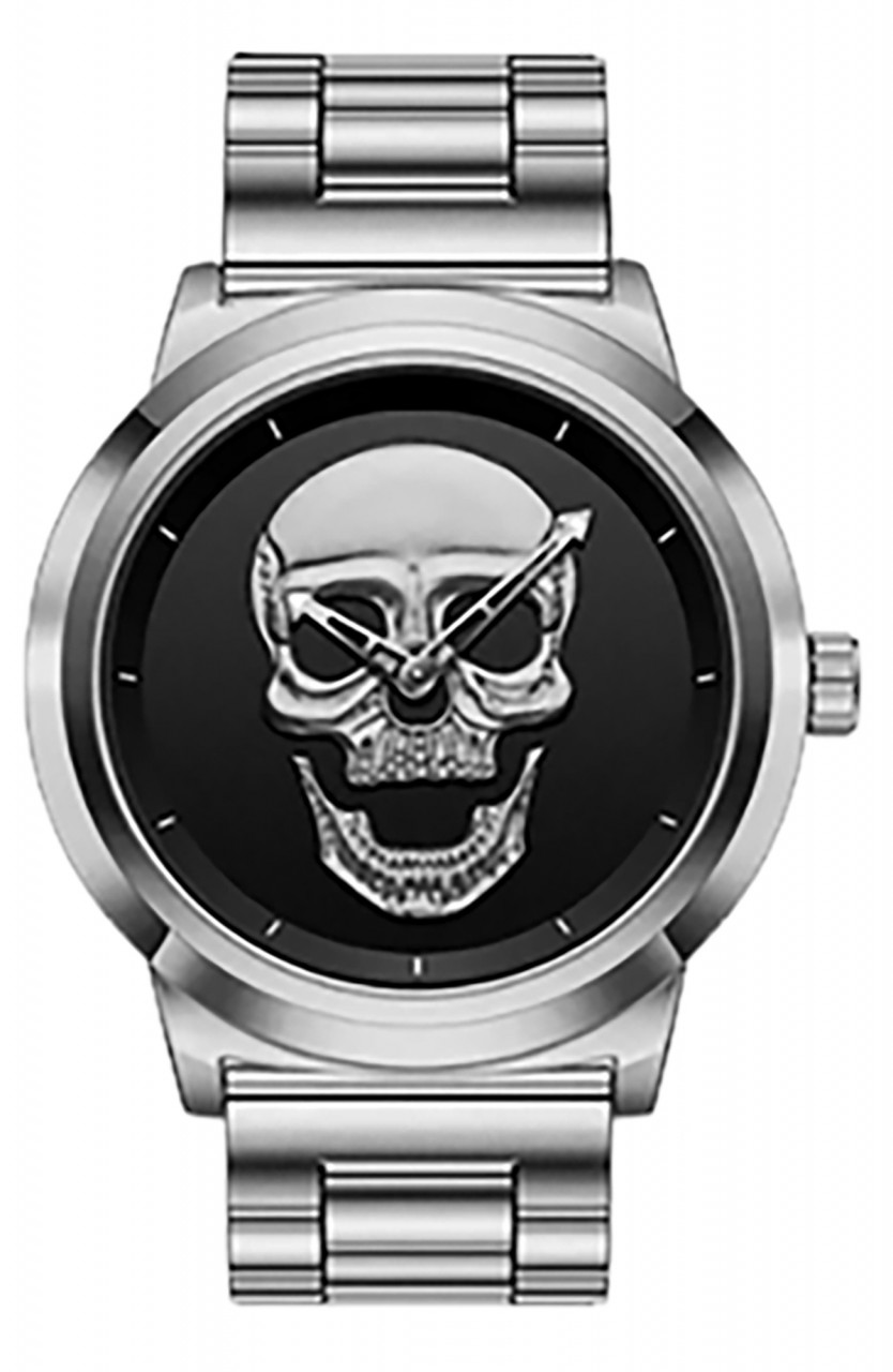O relógio de pulso analógico masculino de 3 ponteiros da marca Raptor possui um movimento Miyota 2035 de alta qualidade. A pulseira de elos de aço inoxidável tem uma largura de 22 mm e pode ser aberta e fechada facilmente com um fecho dobrável de aço inoxidável. O comprimento total do relógio é de 23 cm. A caixa de metal tem diâmetro de 45 mm e altura de 11 mm. O fundo da caixa é feito de aço inoxidável. Além disso, o relógio masculino tem uma resistência à água de 3 Bar. O mostrador é protegido de influências externas por um vidro mineral. A caveira no mostrador é o destaque visual deste relógio, que chama a atenção de todos. A pulseira de elos adapta-se perfeitamente ao pulso e é confortável de usar. Como acessórios do seu produto, você receberá um cartão de garantia e uma caixa original da marca Raptor.
