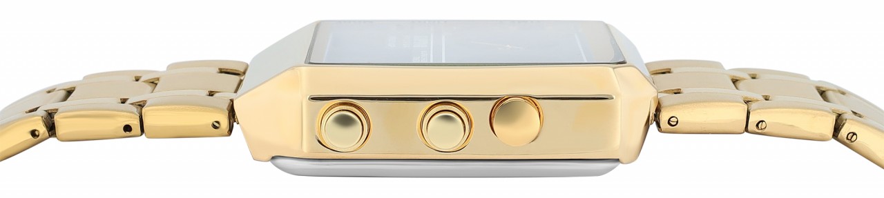 O modelo oferece três mostradores de hora: dois analógicos e um digital – perfeito para ficar de olho em vários fusos horários ao mesmo tempo.