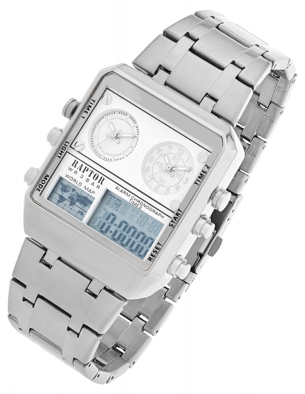 Relógio Raptor® Triple-Time Homem "Jax" com Bracelete em Aço Inoxidável RA20403