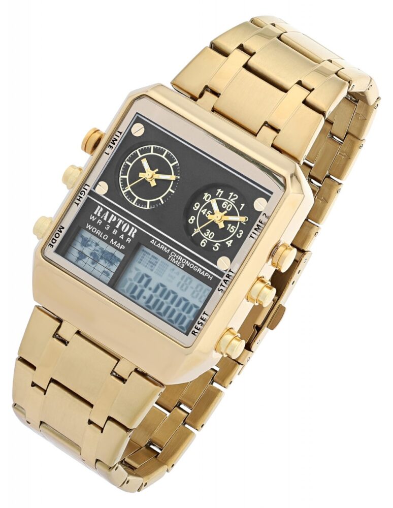 Relógio Raptor® Triple-Time Homem "Jax" com Bracelete em Aço Inoxidável RA20403