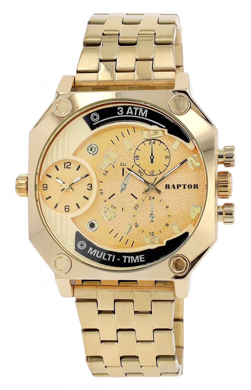 O relógio masculino da marca Raptor “Magnus”, disponível em uma variedade de cores, redefine o design moderno e oferece uma inovadora função multihoras para uma cronometragem perfeita em dois fusos horários. O relógio possui dois movimentos de quartzo de alta qualidade que permitem uma cronometragem precisa em dois fusos horários. Com um comprimento total de 24,5 cm, uma impressionante largura e comprimento de caixa de 48 mm e uma altura de caixa de 12,5 mm, o relógio masculino apresenta-se como uma afirmação marcante. A caixa em metal de alta qualidade, combinada com vidro mineral durável, não só lhe confere uma aparência robusta, mas também garante uma longa vida útil. A pulseira de aço inoxidável com uma generosa largura de banda de 26 mm e um fecho dobrável sublinham a estabilidade do relógio e completam harmoniosamente o visual geral.