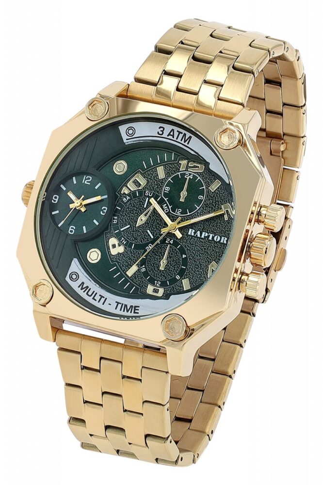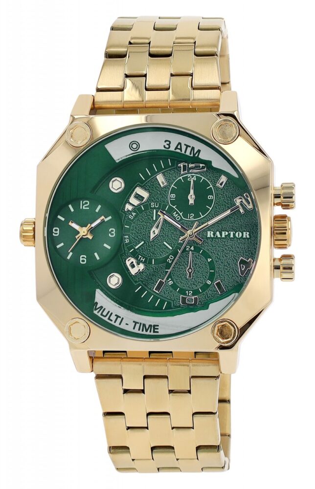 O relógio masculino da marca Raptor “Magnus”, disponível em uma variedade de cores, redefine o design moderno e oferece uma inovadora função multihoras para uma cronometragem perfeita em dois fusos horários. O relógio possui dois movimentos de quartzo de alta qualidade que permitem uma cronometragem precisa em dois fusos horários. Com um comprimento total de 24,5 cm, uma impressionante largura e comprimento de caixa de 48 mm e uma altura de caixa de 12,5 mm, o relógio masculino apresenta-se como uma afirmação marcante. A caixa em metal de alta qualidade, combinada com vidro mineral durável, não só lhe confere uma aparência robusta, mas também garante uma longa vida útil. A pulseira de aço inoxidável com uma generosa largura de banda de 26 mm e um fecho dobrável sublinham a estabilidade do relógio e completam harmoniosamente o visual geral.