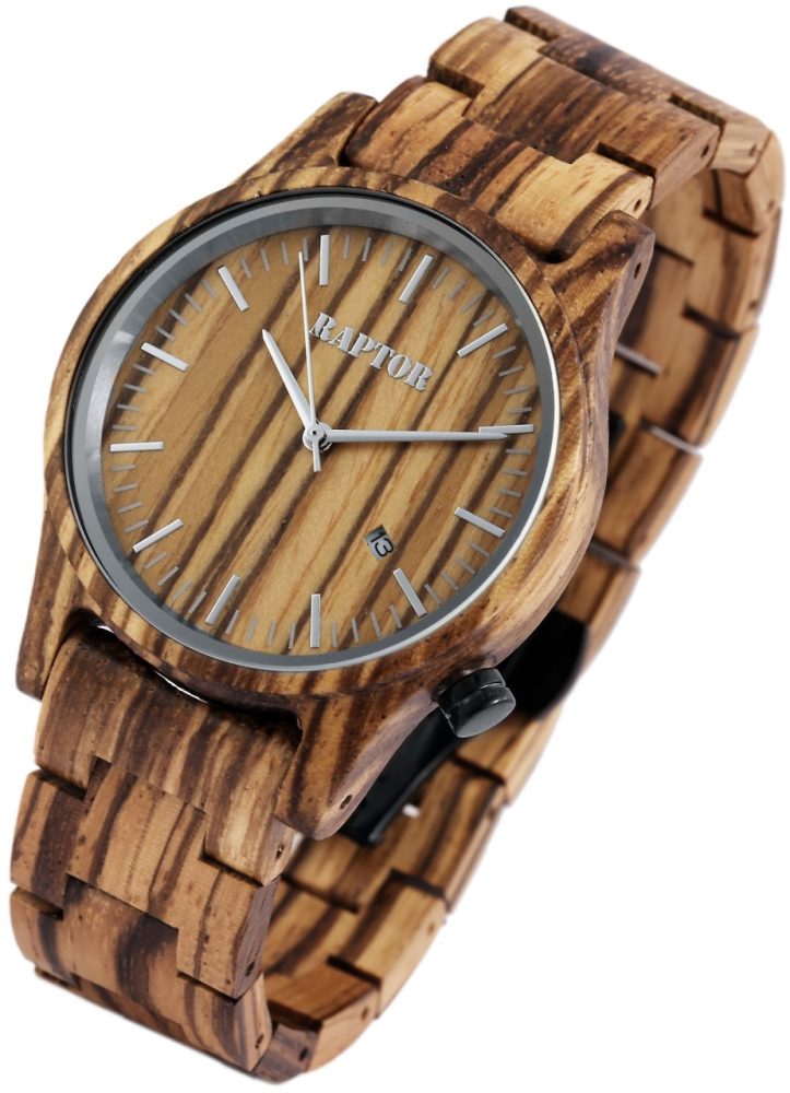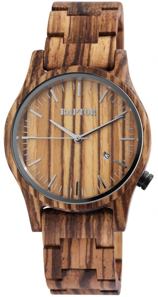 O relógio de pulso analógico de 3 ponteiros para homem da marca Raptor possui um movimento de quartzo Miyota 2115 de alta qualidade. A bracelete de madeira tem 20 mm de largura na extremidade e pode ser aberta e fechada com um fecho de borboleta em aço inoxidável. O comprimento total do relógio é de 22,5 cm. A caixa de madeira com vidro mineral tem um diâmetro de 41 mm e uma altura de 11 mm. O fundo da caixa também é feito de madeira. Existe uma janela de data às “4 horas”. O relógio de madeira Raptor é um verdadeiro chamariz no seu pulso. Pode combiná-lo com qualquer ocasião e, como o material é muito leve, o relógio pode ser ajustado de forma óptima ao seu pulso e é também muito confortável de usar. É um presente ideal para um aniversário, Natal ou Dia dos Namorados. Receberá também um cartão de garantia e uma caixa original Raptor.