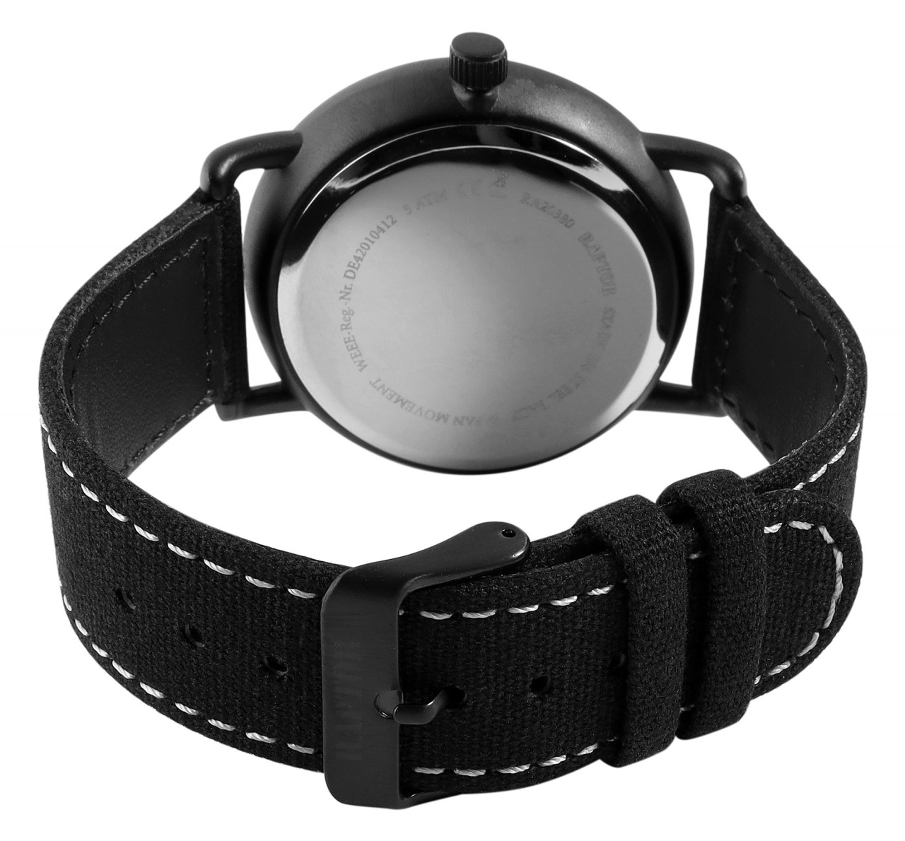 O relógio masculino da marca Raptor “Zoltar” com pulseira em tecido é uma simbiose de elegância, inovação e beleza marcante. Com comprimento total de 25 cm e diâmetro de caixa de 41 mm, ele representa o equilíbrio perfeito entre presença masculina e sutileza. A impressionante altura da caixa de 9 mm e a largura da pulseira de 22 mm sublinham o design sólido deste relógio masculino e garantem uma experiência de uso confortável. O extraordinário relógio masculino desafia os elementos com uma resistência à água de 5 ATM e acompanha o usuário de forma confiável em todas as situações, como durante atividades dinâmicas ao ar livre. Outra característica indispensável é a prática exibição da data às três horas, que mostra sempre o dia correto do calendário. O vidro mineral transparente e robusto protege o relógio.