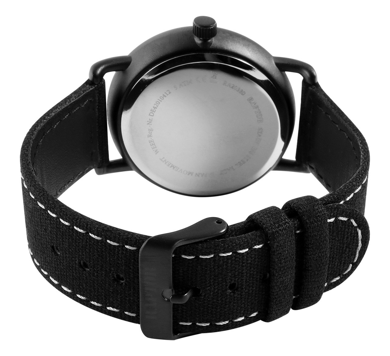 O relógio masculino da marca Raptor “Zoltar” com pulseira em tecido é uma simbiose de elegância, inovação e beleza marcante. Com comprimento total de 25 cm e diâmetro de caixa de 41 mm, ele representa o equilíbrio perfeito entre presença masculina e sutileza. A impressionante altura da caixa de 9 mm e a largura da pulseira de 22 mm sublinham o design sólido deste relógio masculino e garantem uma experiência de uso confortável. O extraordinário relógio masculino desafia os elementos com uma resistência à água de 5 ATM e acompanha o usuário de forma confiável em todas as situações, como durante atividades dinâmicas ao ar livre. Outra característica indispensável é a prática exibição da data às três horas, que mostra sempre o dia correto do calendário. O vidro mineral transparente e robusto protege o relógio.