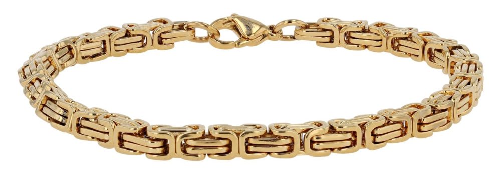 Esta pulseira da marca Raptor incorpora elegância e força – Feita de aço inoxidável, em tom dourado quente e banhado a íons de alta qualidade, esta pulseira de corrente real impressiona pela sua aparência e exala esplendor e graça incomparáveis. Para poder oferecer a cada amante de joias o comprimento certo, esta pulseira com espessura de 4 mm está disponível nos comprimentos de 20 cm ou 22 cm. A pulseira de corrente bizantina foi confeccionada com a máxima precisão para garantir um acabamento impecável e um design irresistível. Os elos estão intrinsecamente entrelaçados para criar a icônica textura da corrente king. O uso de aço inoxidável garante durabilidade. O material é conhecido por sua durabilidade, o que significa que esta pulseira não perderá sua beleza. Além disso, o aço inoxidável é hipoalergênico, o que significa que é sensível à pele.