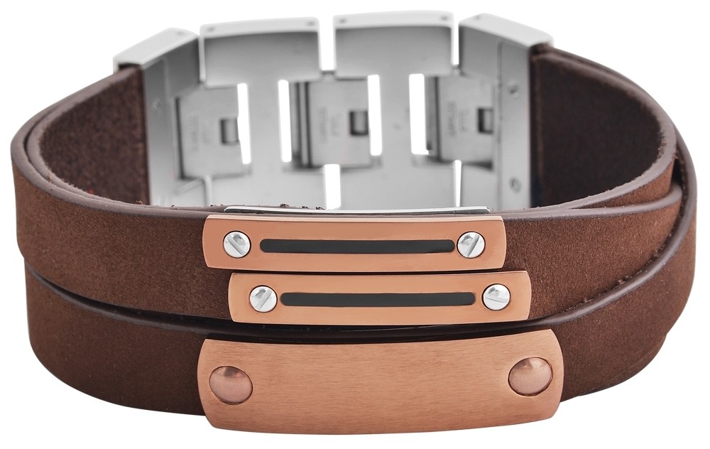 Pulseira em couro genuíno e aço inoxidável na cor castanho da marca Raptor.