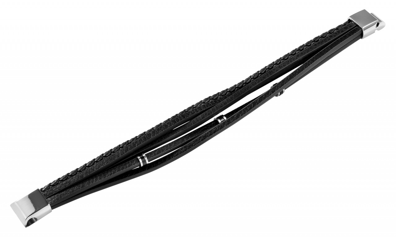 A pulseira preta da marca Raptor é feita de couro genuíno e tem 21 cm de comprimento. A pulseira de cinco fileiras consiste em quatro tiras de couro de 4 mm de largura e um cordão trançado. Elementos brilhantes de aço inoxidável são apresentados em uma pulseira, que completam habilmente o design. Com um fecho magnético prático e sólido, pode ser aberto e fechado com facilidade e também pode ser decorado com pequenas gravuras. A combinação de diferentes materiais torna esta pulseira especial e fica bem em pulsos femininos e masculinos. Com este produto você obtém o acessório perfeito para presentear seus entes queridos com uma joia original ou para se presentear.