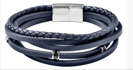 A pulseira azul escura da Raptor é feita de couro genuíno e tem 21 cm de comprimento. A pulseira de cinco fileiras consiste em quatro tiras de couro de 4 mm de largura e um cordão trançado. Elementos brilhantes de aço inoxidável são apresentados em uma pulseira, que completam habilmente o design. Com um fecho magnético prático e sólido, pode ser aberto e fechado com facilidade e também pode ser decorado com pequenas gravuras. A combinação de diferentes materiais torna esta pulseira especial e fica bem em pulsos femininos e masculinos. Com este produto você obtém o acessório perfeito para presentear seus entes queridos com uma joia original ou para se presentear.