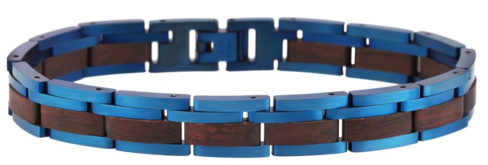 A pulseira de joias da marca Raptor é feita de aço inoxidável e madeira e é composta por 16 elementos conectados por alfinetes. A pulseira parece ter quatro fileiras devido ao tipo e disposição dos elementos. O destaque visual desta joia especial são os elementos de madeira de 4 mm de largura que foram incorporados na lateral da pulseira. Como os elementos estão conectados por pinos, é possível ajustar a pulseira a qualquer tamanho de pulso. A joia tem largura de 10 mm e espessura de material de 3 mm. O comprimento total da pulseira é de 21 cm. A combinação de aço inoxidável e madeira confere à pulseira de joias Raptor um visual muito especial. Graças ao processamento destes dois materiais, pode ser combinado de muitas maneiras diferentes e simplesmente completa qualquer look.