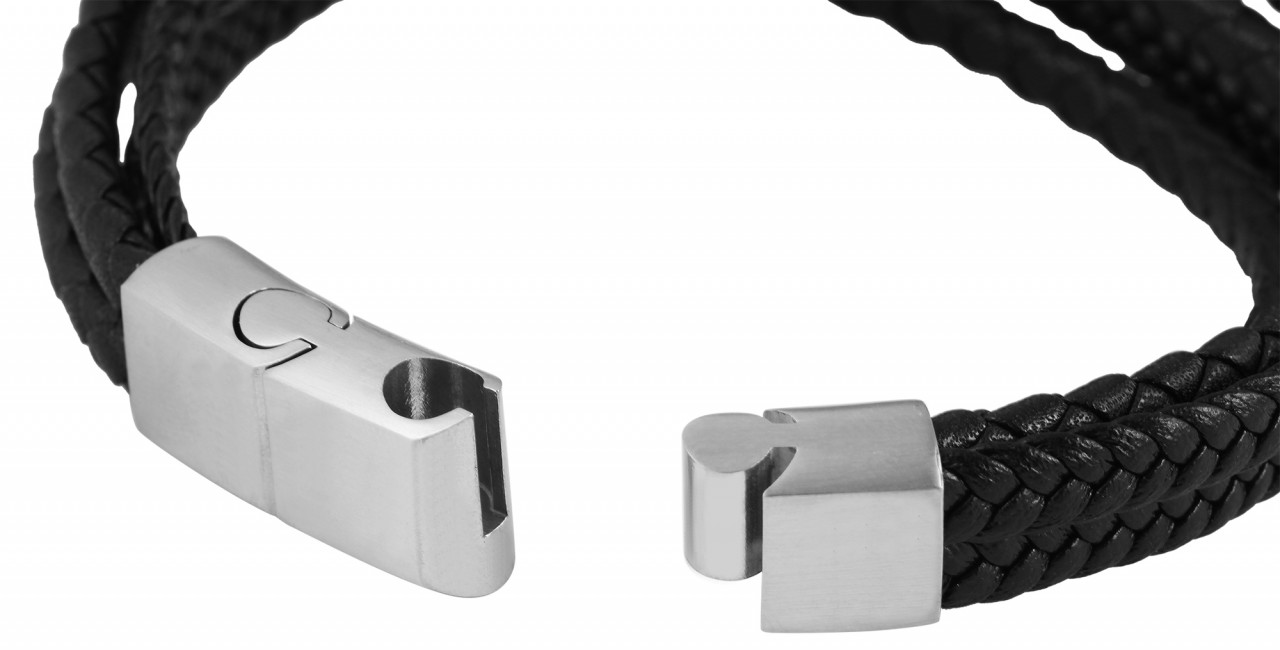 A pulseira de pele genuína da marca Raptor possui quatro fileiras. Possui duas tiras trançadas redondas e duas planas. A pulseira de joias da moda tem um comprimento total de 22 cm. Ele pode ser aberto e fechado com um fecho magnético prateado de aço inoxidável. É possível prolongar a pulseira em 1 cm utilizando um elemento de reposição incluído no fecho. A pulseira de joias pode ser combinada de várias maneiras e se adapta a qualquer ocasião.