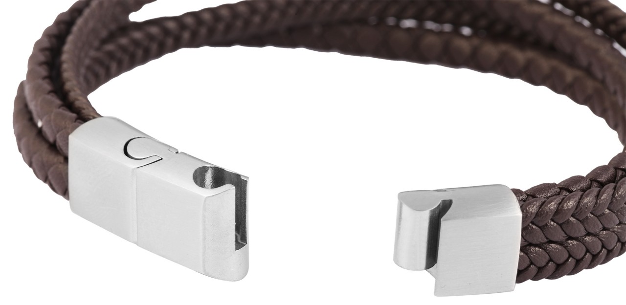 A pulseira de pele genuína da marca Raptor possui quatro fileiras. Possui duas tiras trançadas redondas e duas planas. A pulseira de joias da moda tem um comprimento total de 22 cm. Ele pode ser aberto e fechado com um fecho magnético prateado de aço inoxidável. É possível prolongar a pulseira em 1 cm utilizando um elemento de reposição incluído no fecho. A pulseira de joias pode ser combinada de várias maneiras e se adapta a qualquer ocasião.