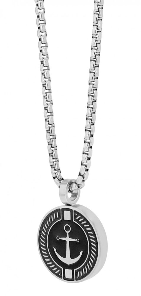 Dê um toque marítimo à sua coleção de jóias com o colar “Damir”! Esta corrente veneziana de 60 cm de comprimento não é apenas um destaque estético, mas também um excelente exemplo das vantagens do aço inoxidável. Sem ferrugem, hipoalergénico e extremamente resistente à corrosão, o aço inoxidável não só torna este colar fácil de cuidar, como também é perfeito para o uso diário. A corrente unissexo está disponível em prateado/azul, prateado/preto e dourado/preto. O fecho lagosta não só proporciona uma fixação segura, como também facilita a colocação e a retirada. O elemento central desta peça de joalharia é o pendente redondo com motivo de âncora. Com 26 x 10 x 2 mm, o pendente capta na perfeição a estética marítima.