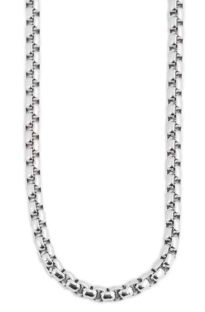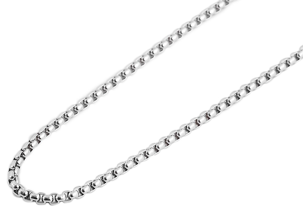 A corrente de aço inoxidável prateado da marca Raptor é confeccionada no padrão Venezia. Este colar é muito confortável de usar e se ajusta perfeitamente ao pescoço do usuário. O colar pode ser aberto e fechado com um mosquetão prateado, que também é feito de aço inoxidável e complementa visualmente o quadro geral. Além disso, há uma corrente extensora de 5 cm de comprimento presa na ponta da corrente, que permite variar o comprimento em até 5 cm e a corrente Venezia se adaptar a qualquer look.