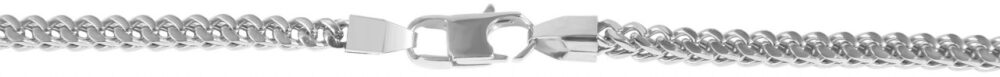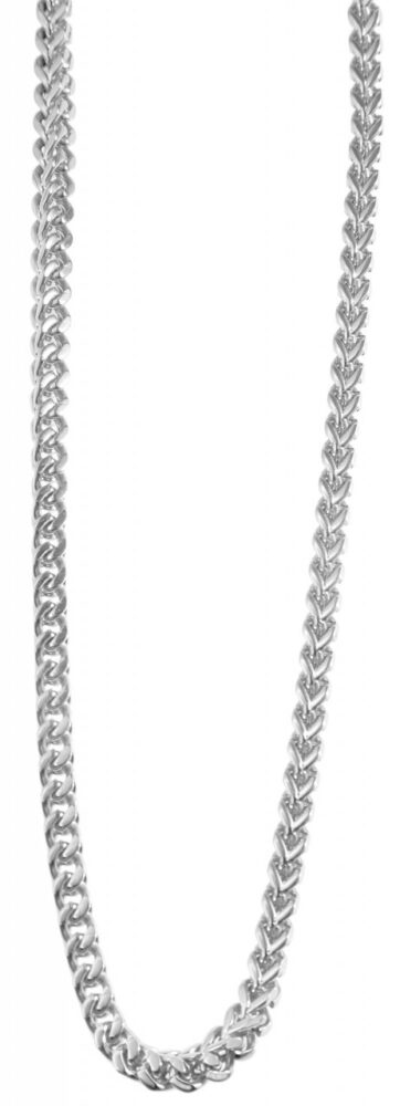 Die Edelstahlkette der Marke Raptor ist im Vierkant-Francokettenmuster gefertigt und ist in verschiedenen Längen erhältlich. Durch die Kettenstärke von 5 mm erhält die Halskette ihren maskulinen und prunkvollen Look. Diese Kette besteht aus einer Reihe eng verbundener V-förmigen Elementen, die für einen hohen Tragekomfort sorgen und das Aussehen so massiv werden lassen. Öffnen und schließen lässt sich die Halskette mit einem silberfarbenen Karabinerhaken, der ebenfalls aus Edelstahl gefertigt ist. Mit diesem Schmuckstück erhalten Sie ein zeitloses und robustes Accessoire, welches Sie sowohl mit, aber auch ohne Kettenanhänger kombinieren können.