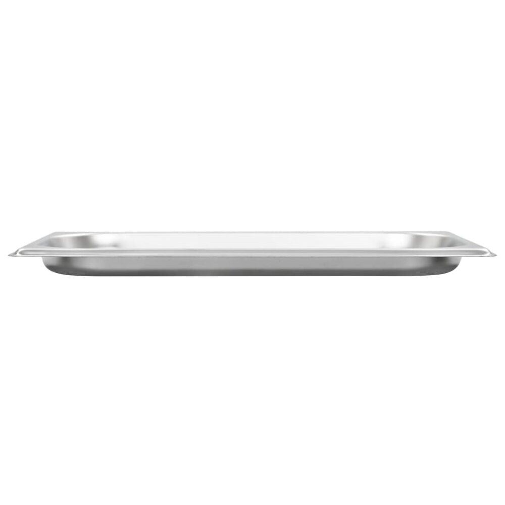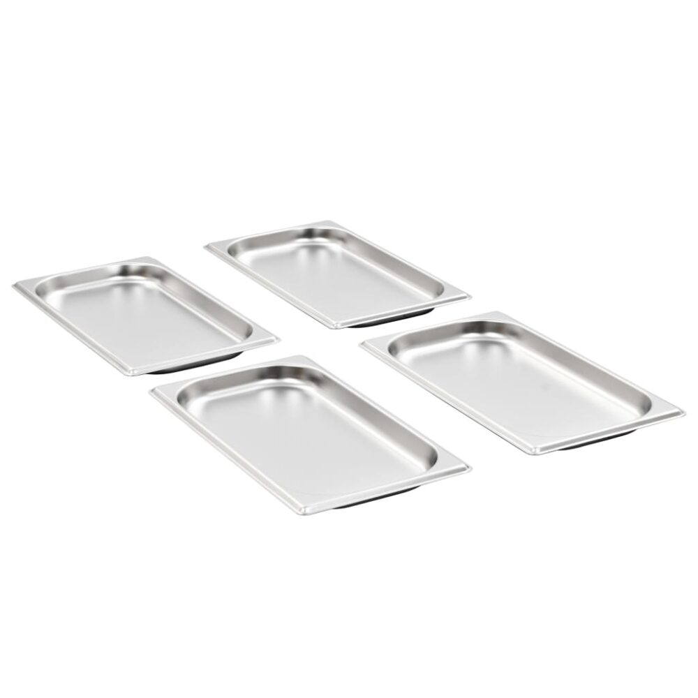 Estes recipientes gastronorm empilháveis serão ótimos complementos para os seus utensílios de cozinha. Feitos de aço inoxidável forte, os tabuleiros para cozinhar a vapor possuem uma construção sólida e são fáceis de limpar. O material resistente evita arranhões e é fácil de cuidar. Os tabuleiros para alimentos possuem as dimensões standard “Gastronorm”; permitindo uma utilização universal e uma ampla gama de combinações. Cabem perfeitamente em todos os seus armários de cozinha e servem todos os propósitos profissionais tais como banho-maria, rechauds e bares de salada. Os tabuleiros são empilháveis e podem ser arrumados para economizar espaço, por isso são muito práticos e ideais para utilização em restaurantes, hotéis, festas, bem como em casa. A entrega inclui 12 tabuleiros.