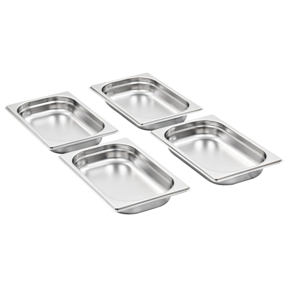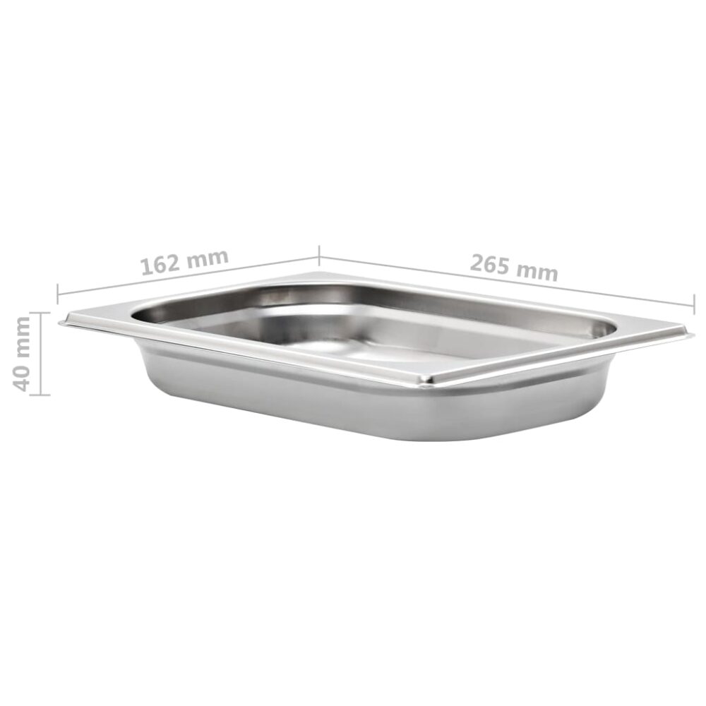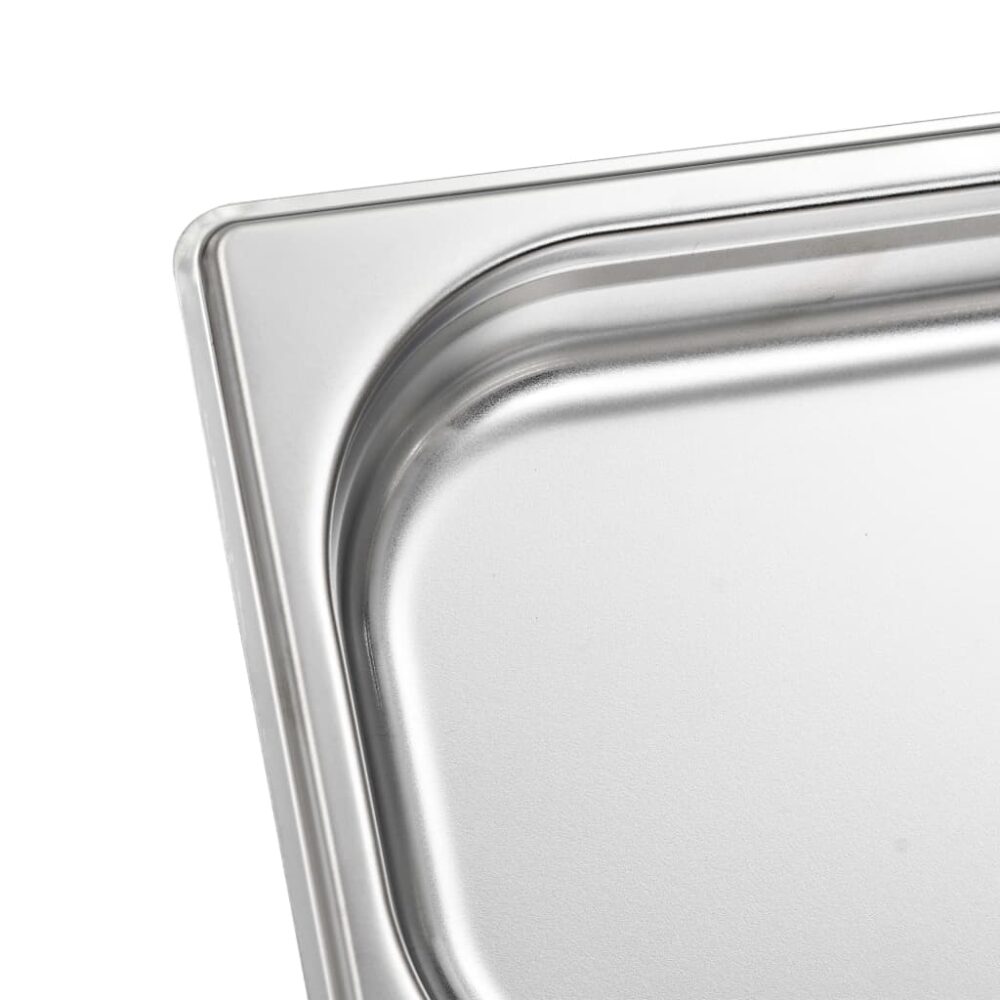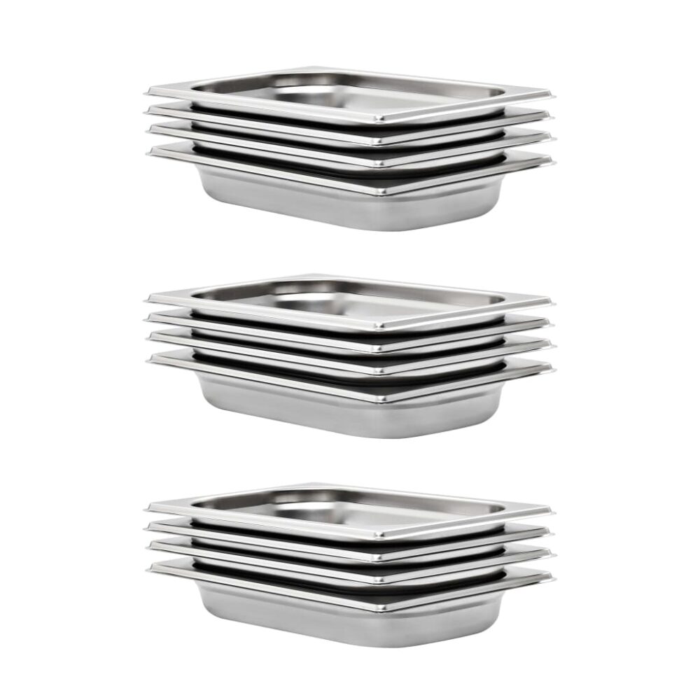 Estes recipientes gastronorm empilháveis serão ótimos complementos para os seus utensílios de cozinha. Feitos de aço inoxidável forte, os tabuleiros para cozinhar a vapor possuem uma construção sólida e são fáceis de limpar. O material resistente evita arranhões e é fácil de cuidar. Os tabuleiros para alimentos possuem as dimensões standard “Gastronorm”; permitindo uma utilização universal e uma ampla gama de combinações. Cabem perfeitamente em todos os seus armários de cozinha e servem todos os propósitos profissionais tais como banho-maria, rechauds e bares de salada. Os tabuleiros são empilháveis e podem ser arrumados para economizar espaço, por isso são muito práticos e ideais para utilização em restaurantes, hotéis, festas, bem como em casa. A entrega inclui 12 tabuleiros.