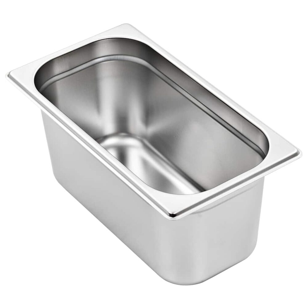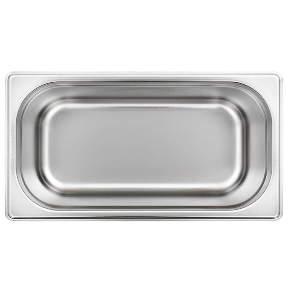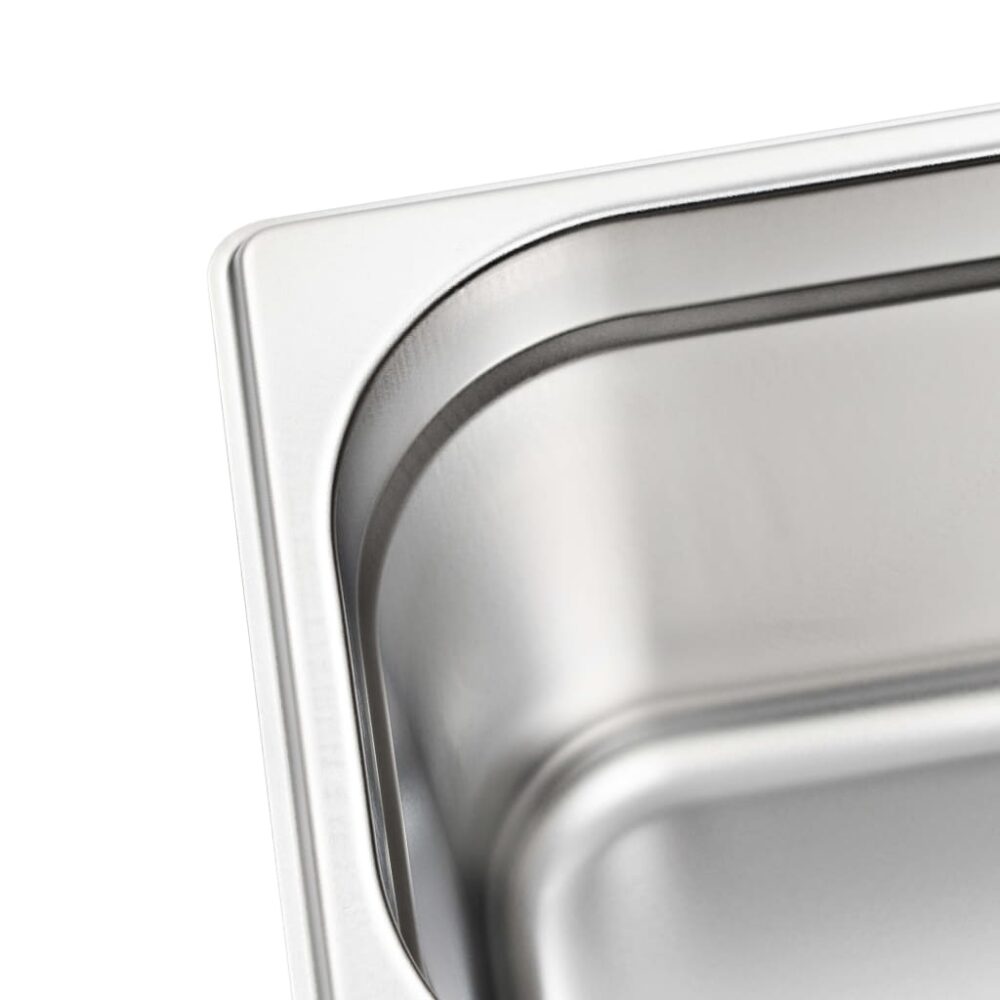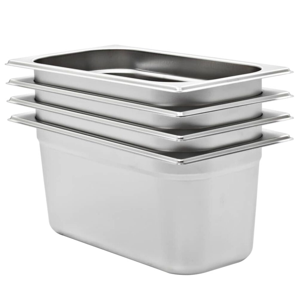 Estes recipientes gastronorm empilháveis serão ótimos complementos para os seus utensílios de cozinha. Feitos de aço inoxidável forte, os tabuleiros para cozinhar a vapor possuem uma construção sólida e são fáceis de limpar. O material resistente evita arranhões e é fácil de cuidar. Os tabuleiros para alimentos possuem as dimensões standard “Gastronorm”; permitindo uma utilização universal e uma ampla gama de combinações. Cabem perfeitamente em todos os seus armários de cozinha e servem todos os propósitos profissionais tais como banho-maria, rechauds e bares de salada. Os tabuleiros são empilháveis e podem ser arrumados para economizar espaço, por isso são muito práticos e ideais para utilização em restaurantes, hotéis, festas, bem como em casa. A entrega inclui 4 tabuleiros.