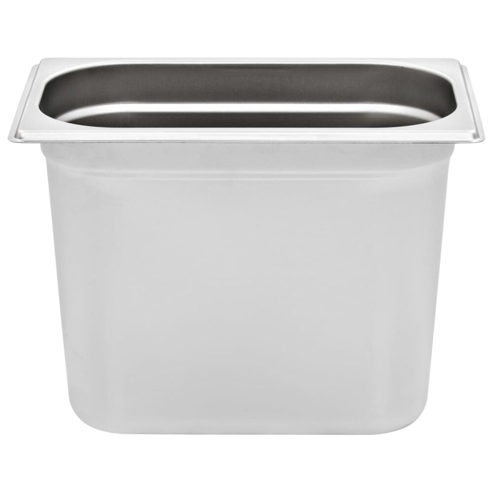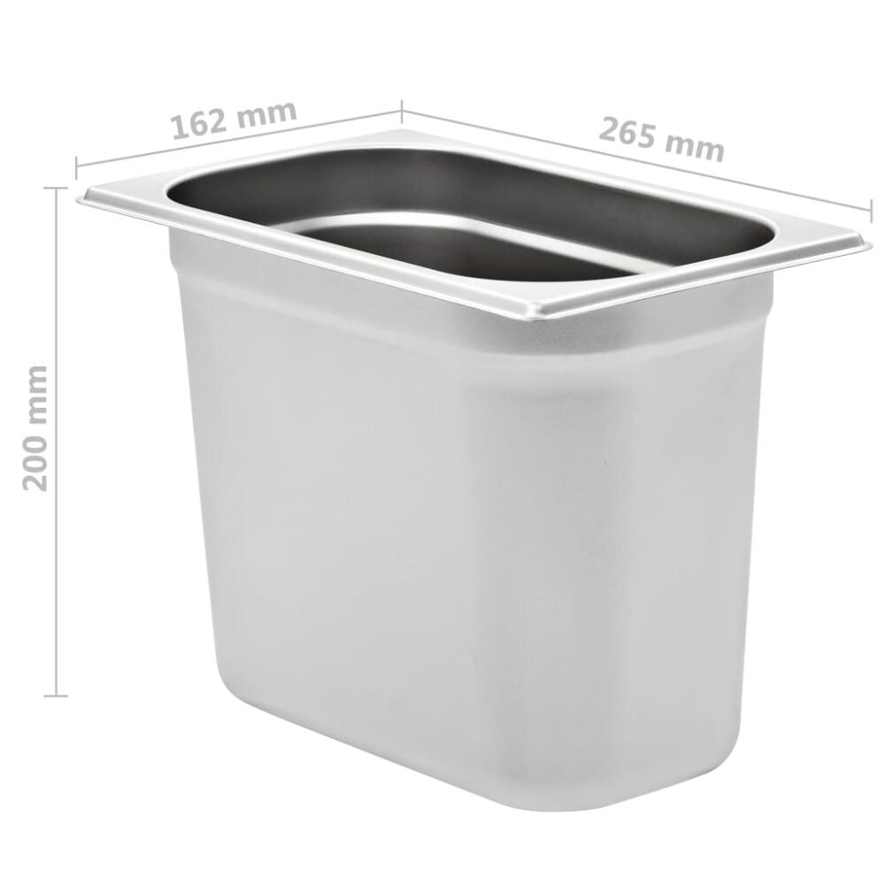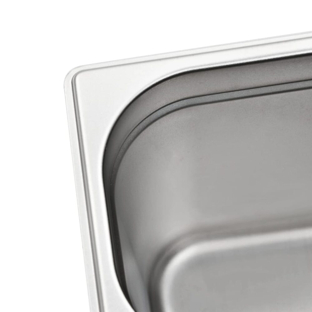 Estes recipientes gastronorm empilháveis serão ótimos complementos para os seus utensílios de cozinha. Feitos de aço inoxidável forte, os tabuleiros para cozinhar a vapor possuem uma construção sólida e são fáceis de limpar. O material resistente evita arranhões e é fácil de cuidar. Os tabuleiros para alimentos possuem as dimensões standard “Gastronorm”; permitindo uma utilização universal e uma ampla gama de combinações. Cabem perfeitamente em todos os seus armários de cozinha e servem todos os propósitos profissionais tais como banho-maria, rechauds e bares de salada. Os tabuleiros são empilháveis e podem ser arrumados para economizar espaço, por isso são muito práticos e ideais para utilização em restaurantes, hotéis, festas, bem como em casa. A entrega inclui 4 tabuleiros.