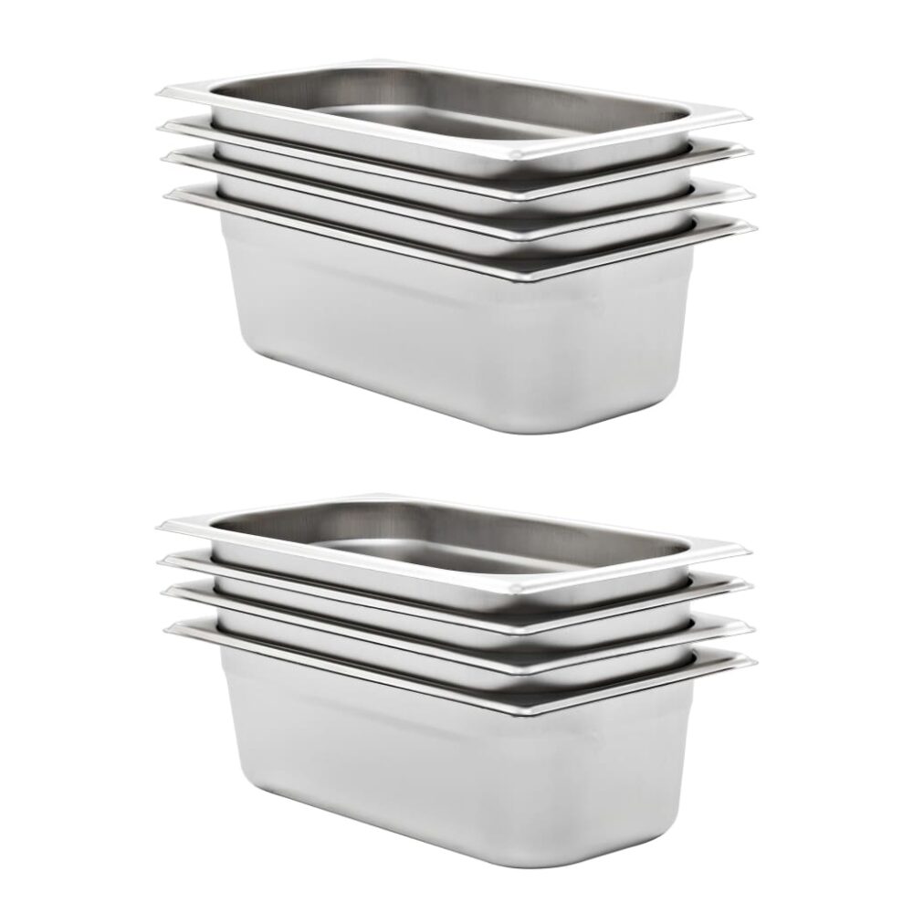 Recipientes gastronorm 8 pcs GN 1/3 100 mm aço inoxidável - PORTES GRÁTIS