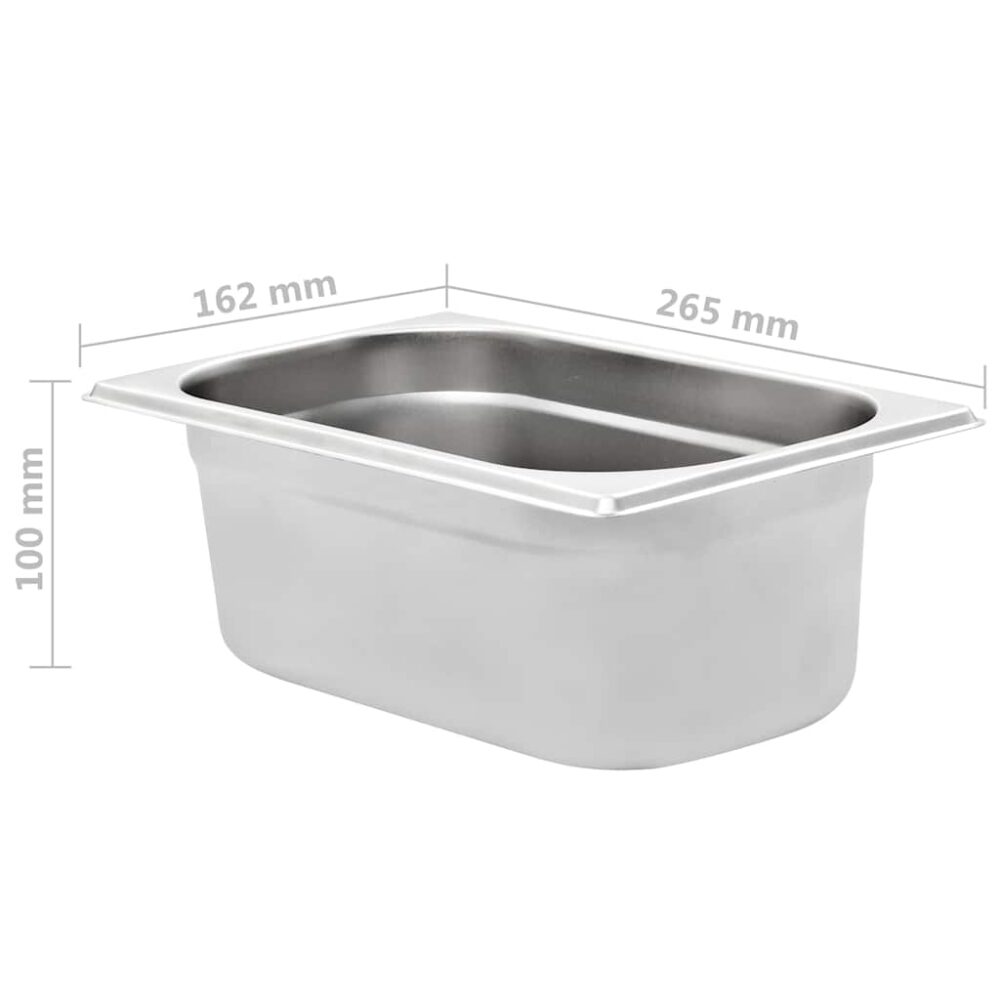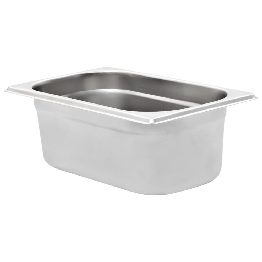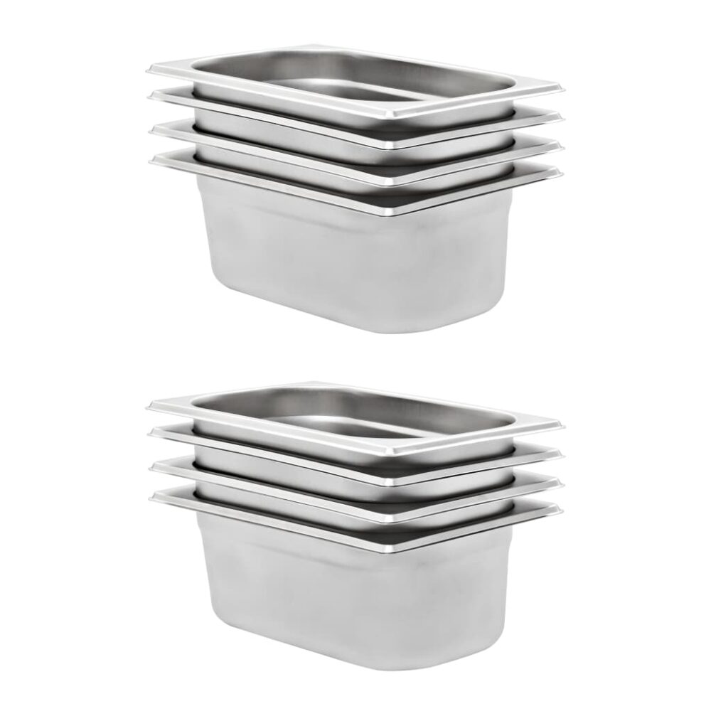 Estes recipientes gastronorm empilháveis serão ótimos complementos para os seus utensílios de cozinha. Feitos de aço inoxidável forte, os tabuleiros para cozinhar a vapor possuem uma construção sólida e são fáceis de limpar. O material resistente evita arranhões e é fácil de cuidar. Os tabuleiros para alimentos possuem as dimensões standard “Gastronorm”; permitindo uma utilização universal e uma ampla gama de combinações. Cabem perfeitamente em todos os seus armários de cozinha e servem todos os propósitos profissionais tais como banho-maria, rechauds e bares de salada. Os tabuleiros são empilháveis e podem ser arrumados para economizar espaço, por isso são muito práticos e ideais para utilização em restaurantes, hotéis, festas, bem como em casa. A entrega inclui 8 tabuleiros.
