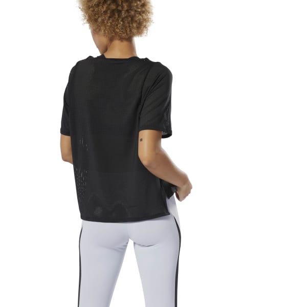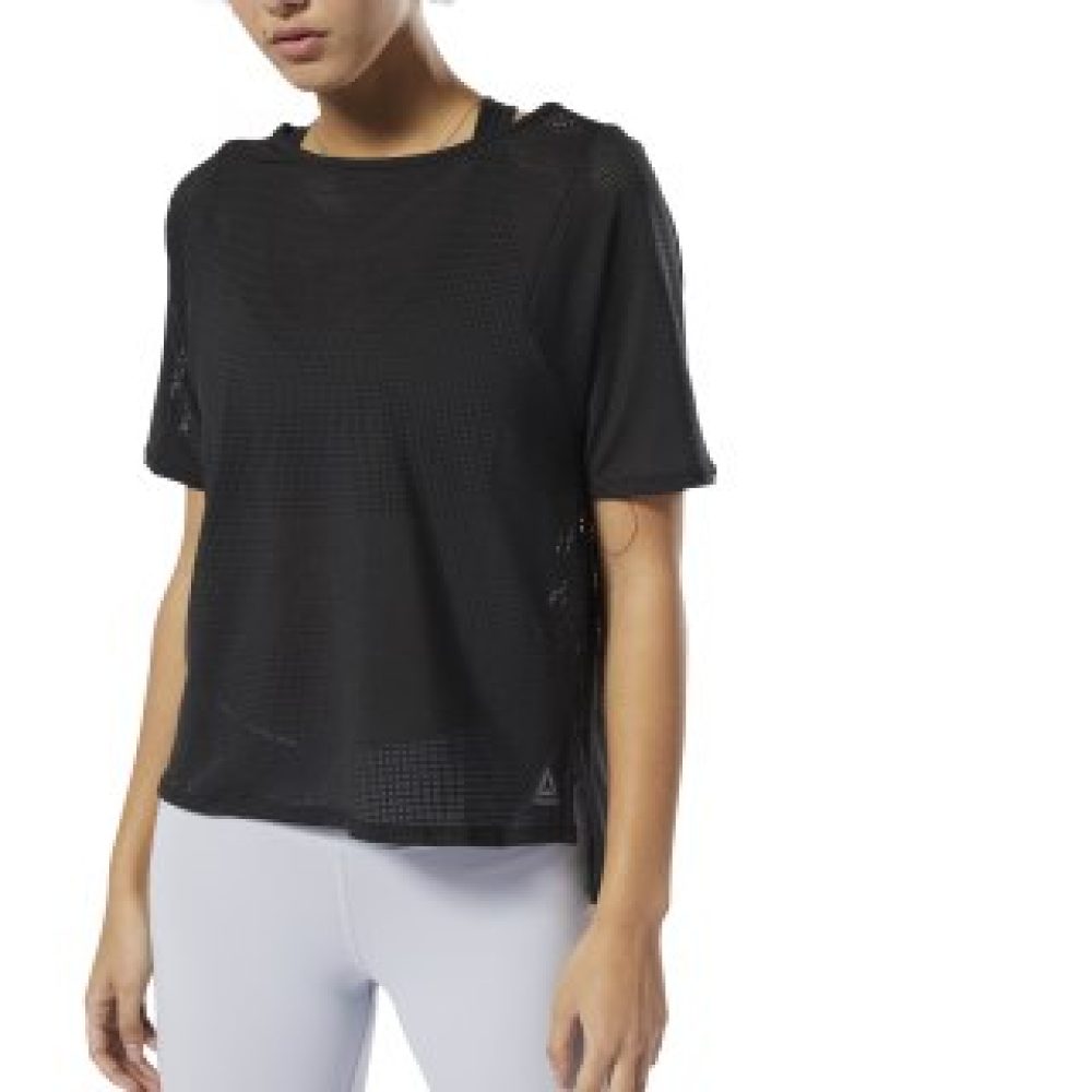 T-shirt Reebok feminina para treino da mais alta intensidade. A tecnologia SPEEDWICK remove o excesso de suor do corpo e você sempre estará seco. O prático design em preto combina perfeitamente com várias roupas.