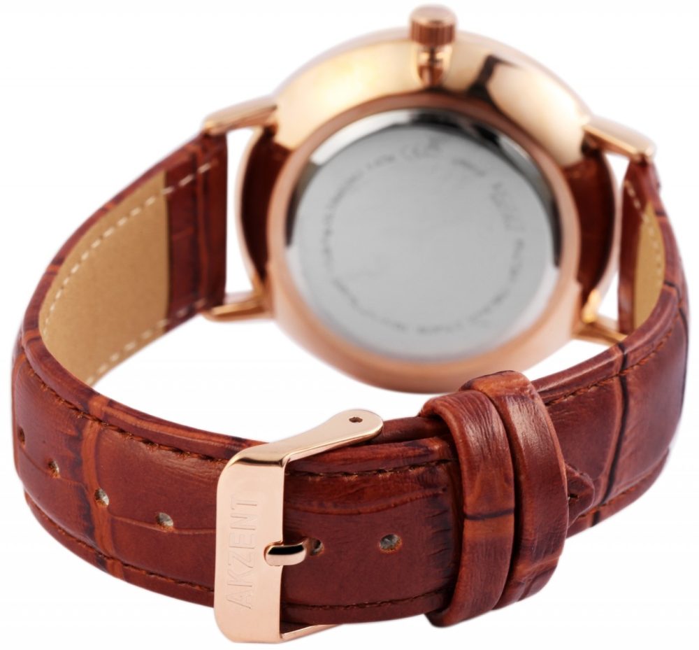 O relógio de pulso analógico de 3 ponteiros para homem da marca Akzent Exclusive possui um movimento de quartzo de alta qualidade. A pulseira em pele sintética tem 20 mm de largura na alça e pode ser aberta e fechada com uma fivela. O comprimento total do relógio é de 25,5 cm. A caixa de metal com vidro mineral tem um diâmetro de 42 mm e uma altura de 10 mm. O fundo da caixa é feito de aço inoxidável e o relógio tem resistência à água de 3 bar. O mostrador é simples e os ponteiros e números são monocromáticos. O relógio impressiona…