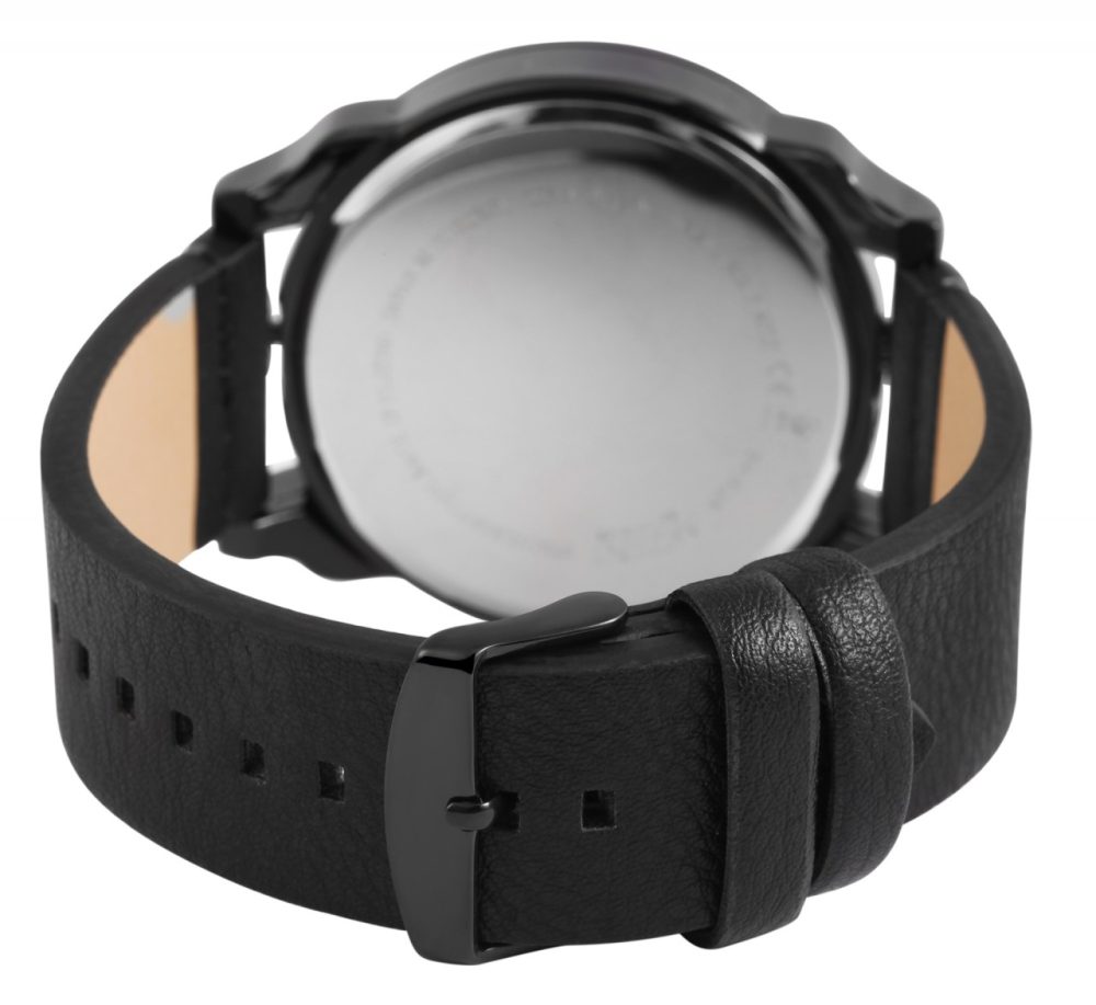 Relógio masculino com bracelete de pele sintética com exibição de data. Possui um movimento de quartzo de alta qualidade. A bracelete tem 18 mm de largura e tem uma fivela de pino. O comprimento total do relógio é de 23.5 cm. A caixa de metal com vidro mineral tem um diâmetro de 35 mm e uma altura de 10 mm. O fundo da caixa é feito de aço inoxidável e o relógio tem resistência à água de 3 ATM.