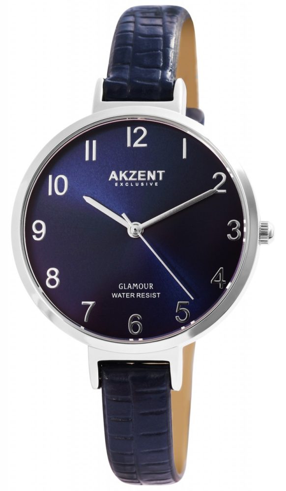 Relógio feminino Akzent Exclusive com pulseira em pele sintética e revestimento IP.