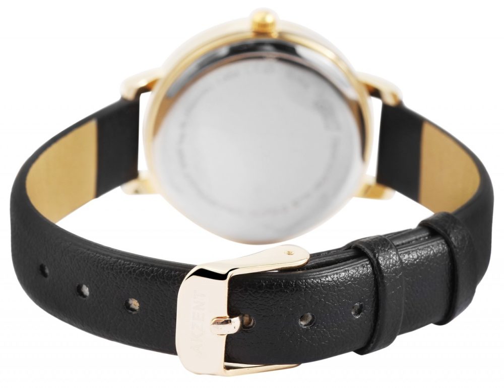 O relógio de pulso analógico feminino de 3 ponteiros da marca Akzent Exclusive possui um movimento de quartzo de alta qualidade. A pulseira em imitação de couro tem 12 mm de largura na alça e pode ser aberta e fechada com uma fivela. O comprimento total do relógio é de 23 cm. A caixa de metal com vidro mineral tem um diâmetro de 31 mm e uma altura de 8 mm. O fundo da caixa é feito de aço inoxidável e o relógio tem resistência à água de 3 ATM. Um destaque visual é o mostrador, que possui um anel visualmente separado no qual onze pedras semelhantes decoram o relógio com índices de pontos. Além disso, o círculo interno é discretamente destacado com um padrão xadrez. Às doze horas há um número da mesma cor dos ponteiros.
