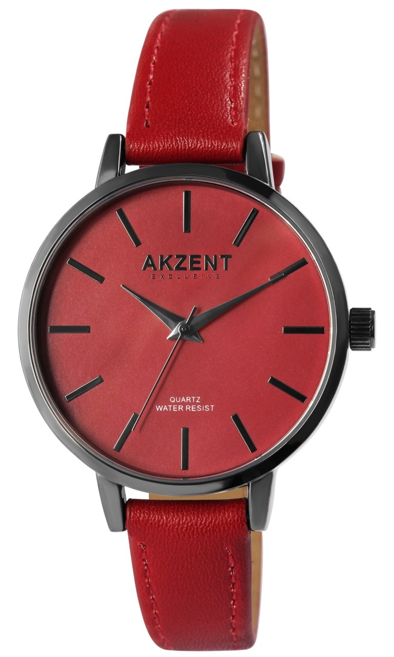 O relógio de pulso analógico feminino de 3 ponteiros da marca Akzent Exclusive possui um movimento de quartzo de alta qualidade. A pulseira em imitação de couro tem 14 mm de largura na alça e pode ser aberta e fechada com uma fivela. O comprimento total do relógio é de 24 cm. A caixa de metal com vidro mineral tem um diâmetro de 38 mm e uma altura de 8 mm. O fundo da caixa é feito de aço inoxidável e o relógio tem resistência à água de 3 ATM. Os ponteiros e índices têm a mesma cor e combinam bem com a caixa da mesma cor. O relógio é um lindo acessório que pode ser combinado de várias maneiras.