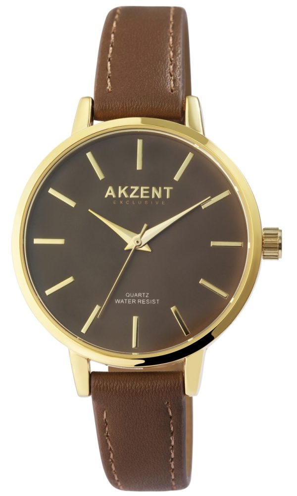 O relógio de pulso analógico feminino de 3 ponteiros da marca Akzent Exclusive possui um movimento de quartzo de alta qualidade. A pulseira em imitação de couro tem 14 mm de largura na alça e pode ser aberta e fechada com uma fivela. O comprimento total do relógio é de 24 cm. A caixa de metal com vidro mineral tem um diâmetro de 38 mm e uma altura de 8 mm. O fundo da caixa é feito de aço inoxidável e o relógio tem resistência à água de 3 ATM. Os ponteiros e índices têm a mesma cor e combinam bem com a caixa da mesma cor. O relógio é um lindo acessório que pode ser combinado de várias maneiras.