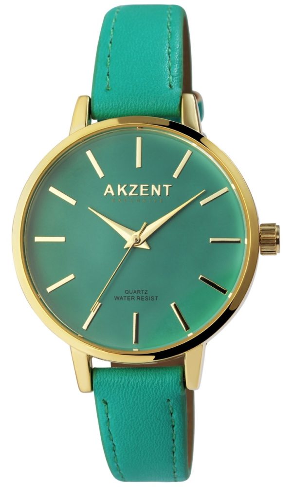 O relógio de pulso analógico feminino de 3 ponteiros da marca Akzent Exclusive possui um movimento de quartzo de alta qualidade. A pulseira em imitação de couro tem 14 mm de largura na alça e pode ser aberta e fechada com uma fivela. O comprimento total do relógio é de 24 cm. A caixa de metal com vidro mineral tem um diâmetro de 38 mm e uma altura de 8 mm. O fundo da caixa é feito de aço inoxidável e o relógio tem resistência à água de 3 ATM. Os ponteiros e índices têm a mesma cor e combinam bem com a caixa da mesma cor. O relógio é um lindo acessório que pode ser combinado de várias maneiras.