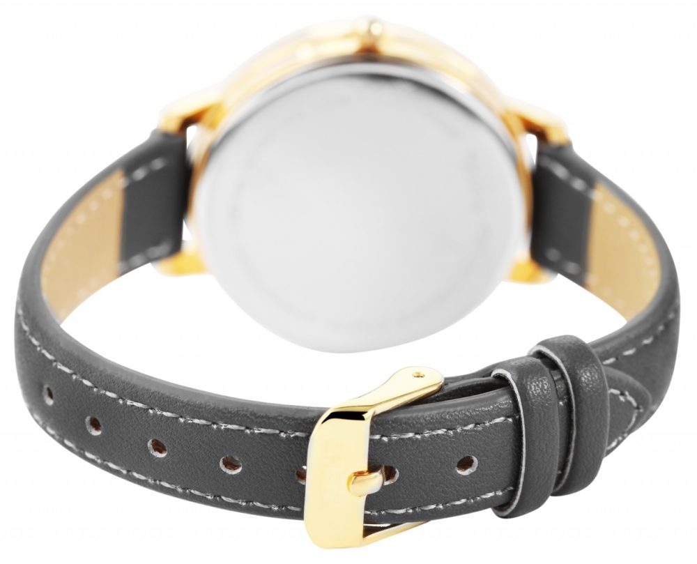 O relógio de pulso analógico feminino de 3 ponteiros da marca Akzent Exclusive possui um movimento de quartzo de alta qualidade. A pulseira em pele sintética tem 14 mm de largura na alça e pode ser aberta e fechada com uma fivela. O comprimento total do relógio é de 23,5 cm. A caixa de metal com vidro mineral tem um diâmetro de 36 mm e uma altura de 9 mm. O fundo da caixa é feito de aço inoxidável e o relógio tem resistência à água de 3 ATM. Um destaque visual é o mostrador, que é decorado com diversas flores, cada uma delas composta por seis pérolas brancas. O interior da flor consiste em uma pequena pedra simili. Existem também doze símiles adicionais no mostrador que servem como índices de pontos. Os ponteiros são feitos na cor da caixa e combinam bem com a aparência geral do relógio.