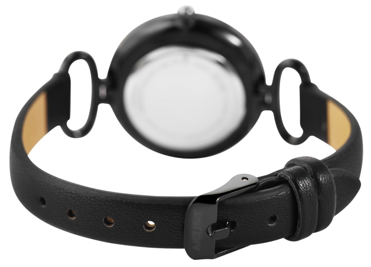 O relógio de pulso analógico de 3 ponteiros para senhora da marca Akzent Exclusive possui um movimento de quartzo de alta qualidade. A bracelete em imitação de pele tem 10 mm de largura na extremidade e está ligada à caixa por uma argola metálica oval semiaberta. Pode ser aberta e fechada com uma fivela de pino. O comprimento total do relógio é de 23,5 cm. A caixa metálica com vidro mineral tem um diâmetro de 33 mm e uma altura de 8 mm. O fundo da caixa é feito de aço inoxidável e o relógio tem uma resistência à água de 3 ATM. Um destaque visual é o mostrador, que é engastado com oito pedras Similis. Estas funcionam também como índices de pontos. Os ponteiros e os marcadores das horas às doze, três, seis e nove horas têm a mesma cor e, por isso, combinam particularmente bem com o aspeto geral do relógio.