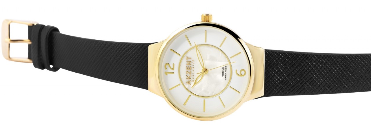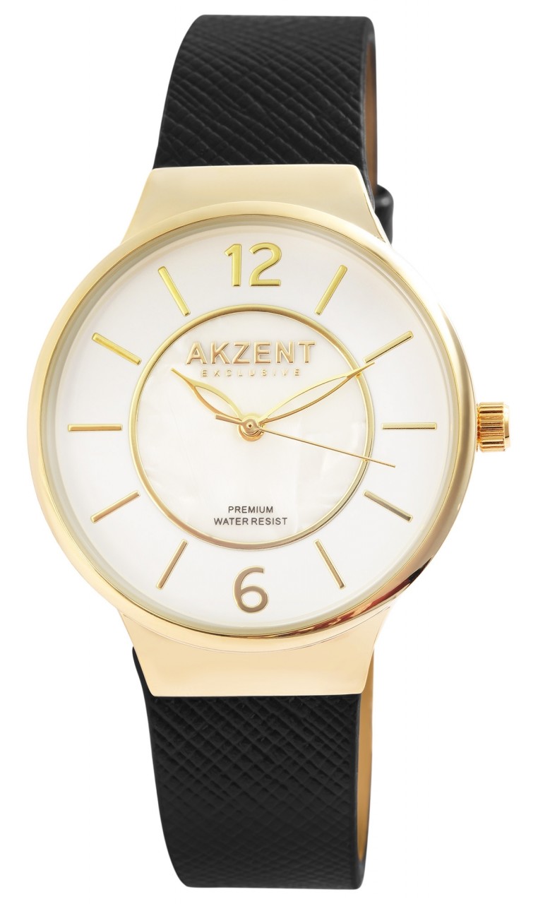 Relógio feminino Akzent Exclusive com pulseira de imitação de couro e revestimento IP.