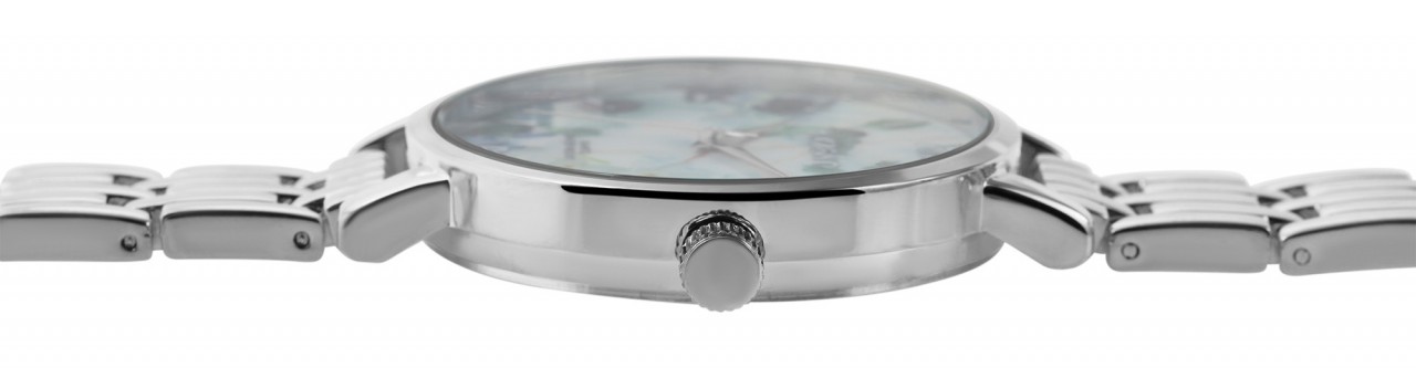 O relógio de pulso analógico feminino de 3 ponteiros da marca Praktik Exclusive possui um movimento de quartzo de alta qualidade. A pulseira de metal tem 14 mm de largura na alça e pode ser aberta e fechada usando um fecho dobrável em aço inoxidável. O comprimento total do relógio é de 20 cm. A caixa de metal com vidro mineral tem um diâmetro de 38 mm e uma altura de 8 mm. O fundo da caixa é feito de aço inoxidável e o relógio tem resistência à água de 3 bar. Um destaque visual é o mostrador, decorado com motivos florais. Os índices e ponteiros têm a mesma cor e combinam bem com a aparência geral do relógio.