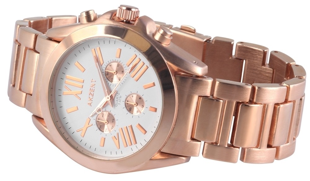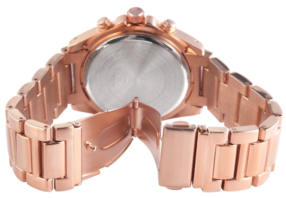 O relógio analógico feminino da marca Praktik possui movimento de quartzo de alta qualidade. A pulseira de metal tem 22 mm de largura e abre com um fecho dobrável em aço inoxidável. O comprimento total é de 19 cm. A caixa de metal com vidro mineral tem dimensão de 43 mm e altura de caixa de 11 mm. A tampa da caixa é feita de aço inoxidável. O relógio é testado com pressão de 3 ATM. Outra característica é: Chronolook.
