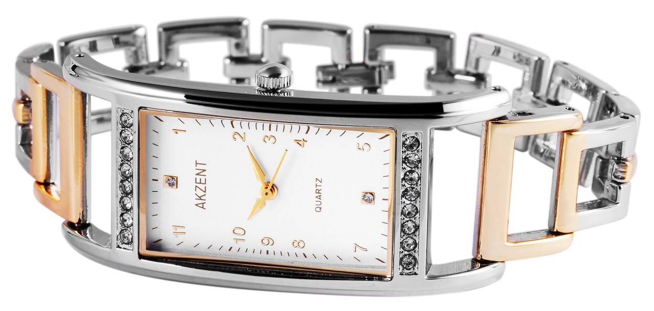 O relógio analógico feminino da marca Akzent possui movimento de quartzo de alta qualidade. A pulseira de metal tem 18 mm de largura e abre com um fecho de clipe. O comprimento total é de 20 cm. A caixa de metal com vidro mineral e altura de caixa de 9 mm. O case é aprimorado com detalhes em cristal. A tampa da caixa é feita de aço inoxidável. O acabamento em cristal no mostrador também é um destaque visual. O relógio é testado com pressão de 3 ATM.