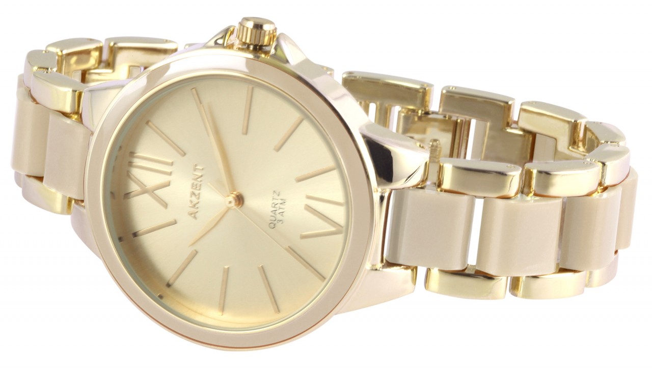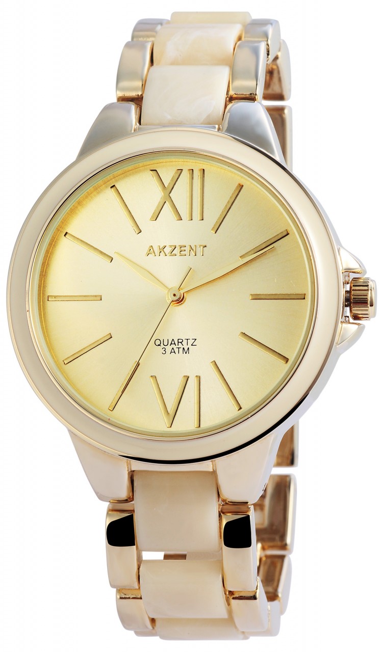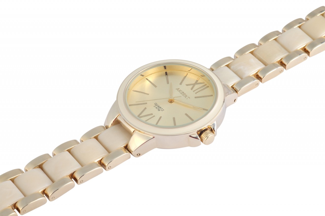 O relógio analógico feminino da marca Akzent possui movimento de quartzo de alta qualidade. A pulseira de metal tem 18 mm de largura e abre com um fecho de clipe. O comprimento total é de 18 cm. A caixa de metal com vidro mineral tem dimensão de 40 mm e altura de caixa de 10 mm. A tampa da caixa é feita de aço inoxidável. O relógio é testado com pressão de 3 ATM.