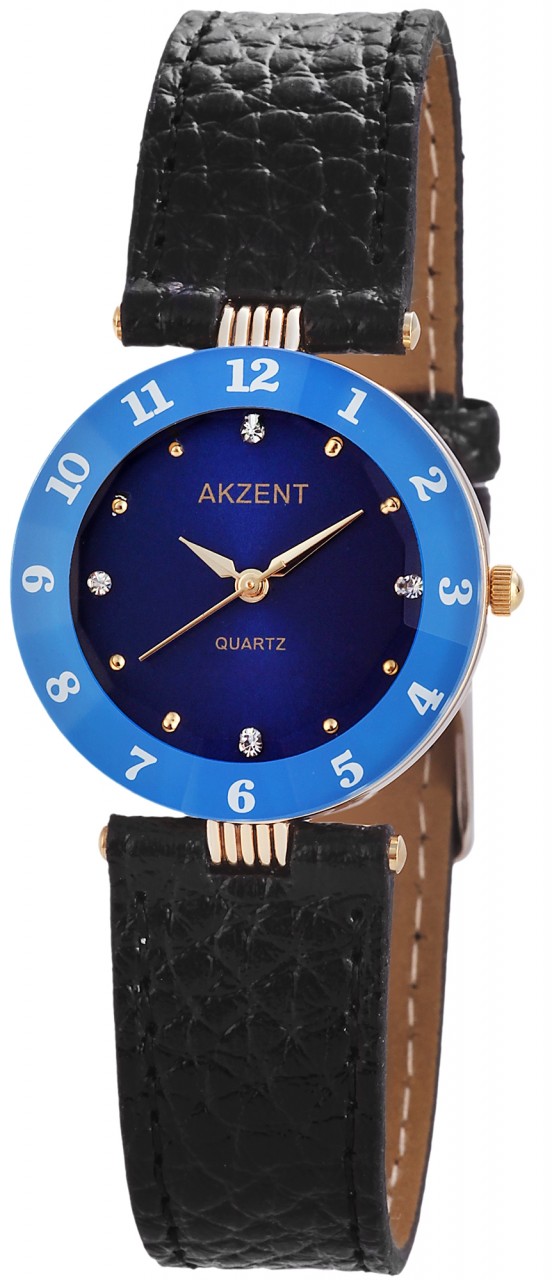 O relógio analógico feminino da marca Akzent possui movimento de quartzo de alta qualidade. A pulseira em imitação de couro tem 18 mm de largura e abre com uma fivela. O comprimento total é de 25 cm. A caixa de metal com vidro mineral tem dimensão de 30 mm e altura de caixa de 10 mm. A tampa da caixa é feita de aço inoxidável. O acabamento em cristal no mostrador também é um destaque visual. O relógio é testado com pressão de 3 ATM. Uma característica especial do relógio é: pulseira XXL.