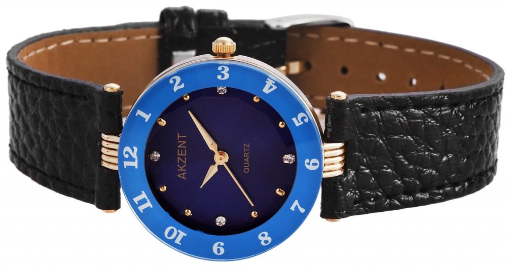 O relógio analógico feminino da marca Akzent possui movimento de quartzo de alta qualidade. A pulseira em imitação de couro tem 18 mm de largura e abre com uma fivela. O comprimento total é de 25 cm. A caixa de metal com vidro mineral tem dimensão de 30 mm e altura de caixa de 10 mm. A tampa da caixa é feita de aço inoxidável. O acabamento em cristal no mostrador também é um destaque visual. O relógio é testado com pressão de 3 ATM. Uma característica especial do relógio é: pulseira XXL.