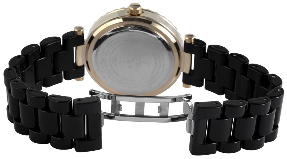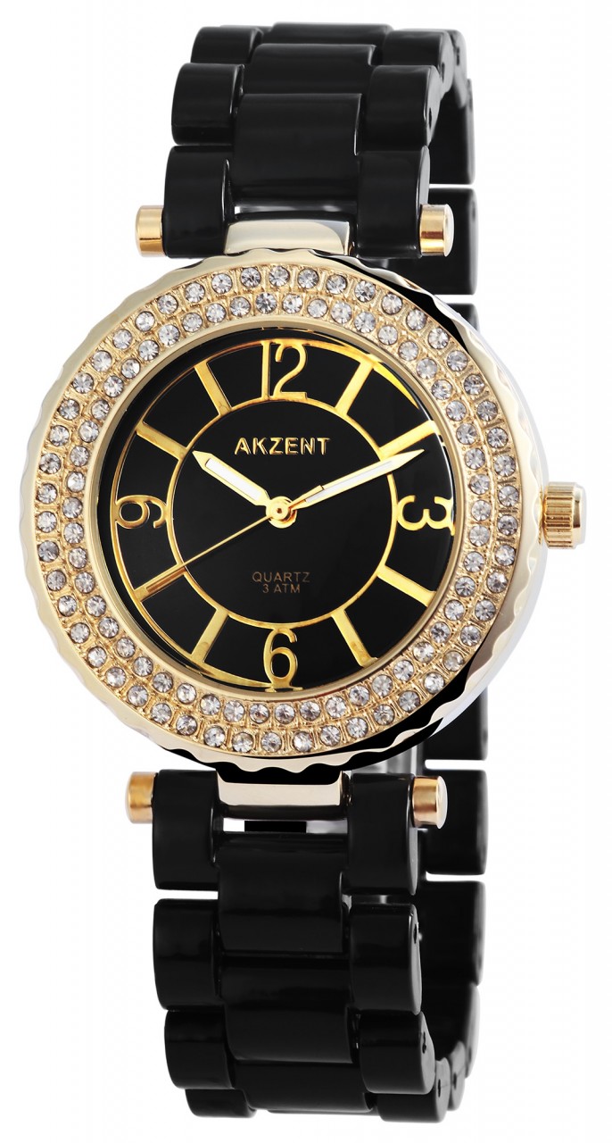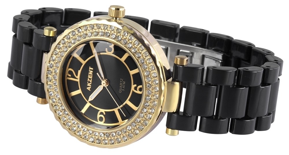 O relógio analógico feminino da marca Akzent possui movimento de quartzo de alta qualidade. A pulseira de plástico tem 20 mm de largura e abre com um fecho dobrável em aço inoxidável. O comprimento total é de 19 cm. A caixa de metal com vidro mineral tem dimensão de 40 mm e altura de caixa de 12 mm. O case é aprimorado com detalhes em cristal. A tampa da caixa é feita de aço inoxidável. O relógio é testado com pressão de 3 ATM.