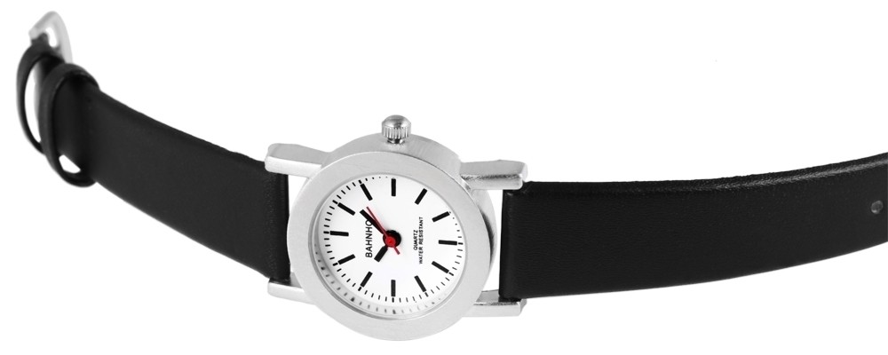 O relógio analógico feminino da marca Bahnhof possui um movimento de quartzo de alta qualidade. A pulseira em Pele Sintética tem 14 mm de largura e abre com uma fivela. O comprimento total é de 20 cm. A caixa de metal com vidro mineral tem dimensão de 25 mm e altura de caixa de 7 mm. A tampa da caixa é feita de aço inoxidável.