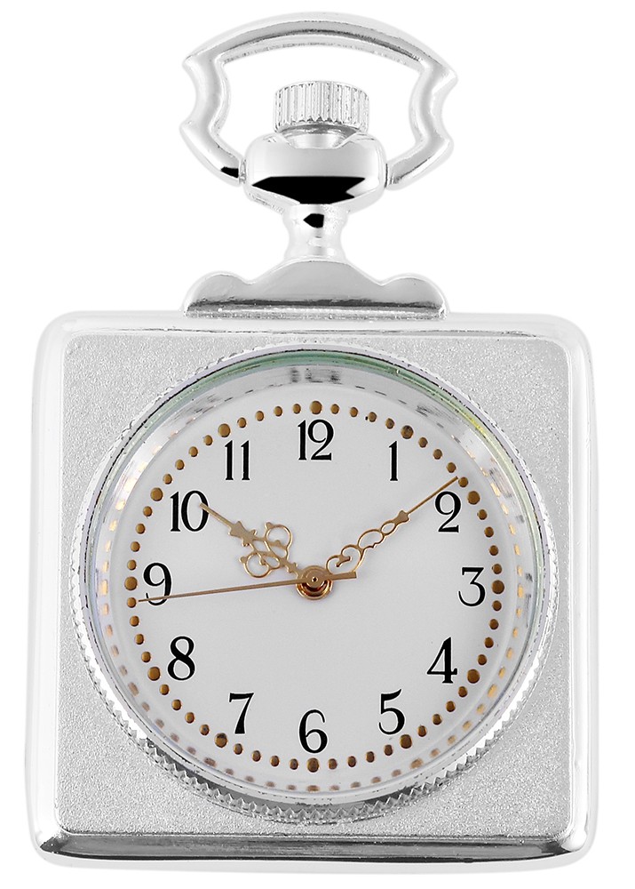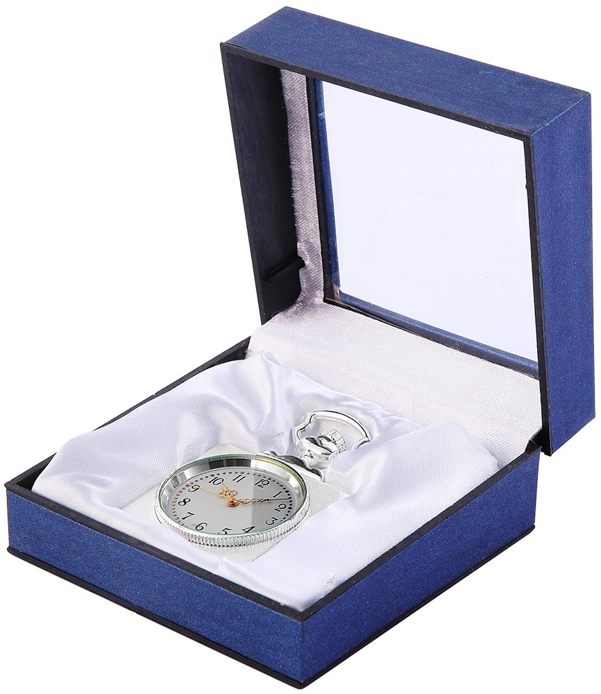 O relógio de bolso analógico possui um movimento de quartzo de alta qualidade. A caixa de metal com vidro mineral tem dimensões de 44×44 mm e altura de caixa de 12 mm. A tampa da caixa é feita de metal. Como acessórios para o seu produto você receberá: caixa original.