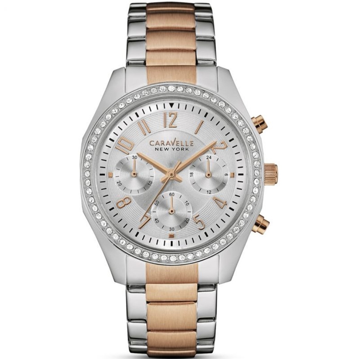 Os relógios Caravelle apresentam uma reinterpretação moderna do design clássico cujo dinamismo se expressa nas duplas nuances das pulseiras de aço inoxidável e no brilho dos zircões que se destacam, iluminando-o, nos mostradores.