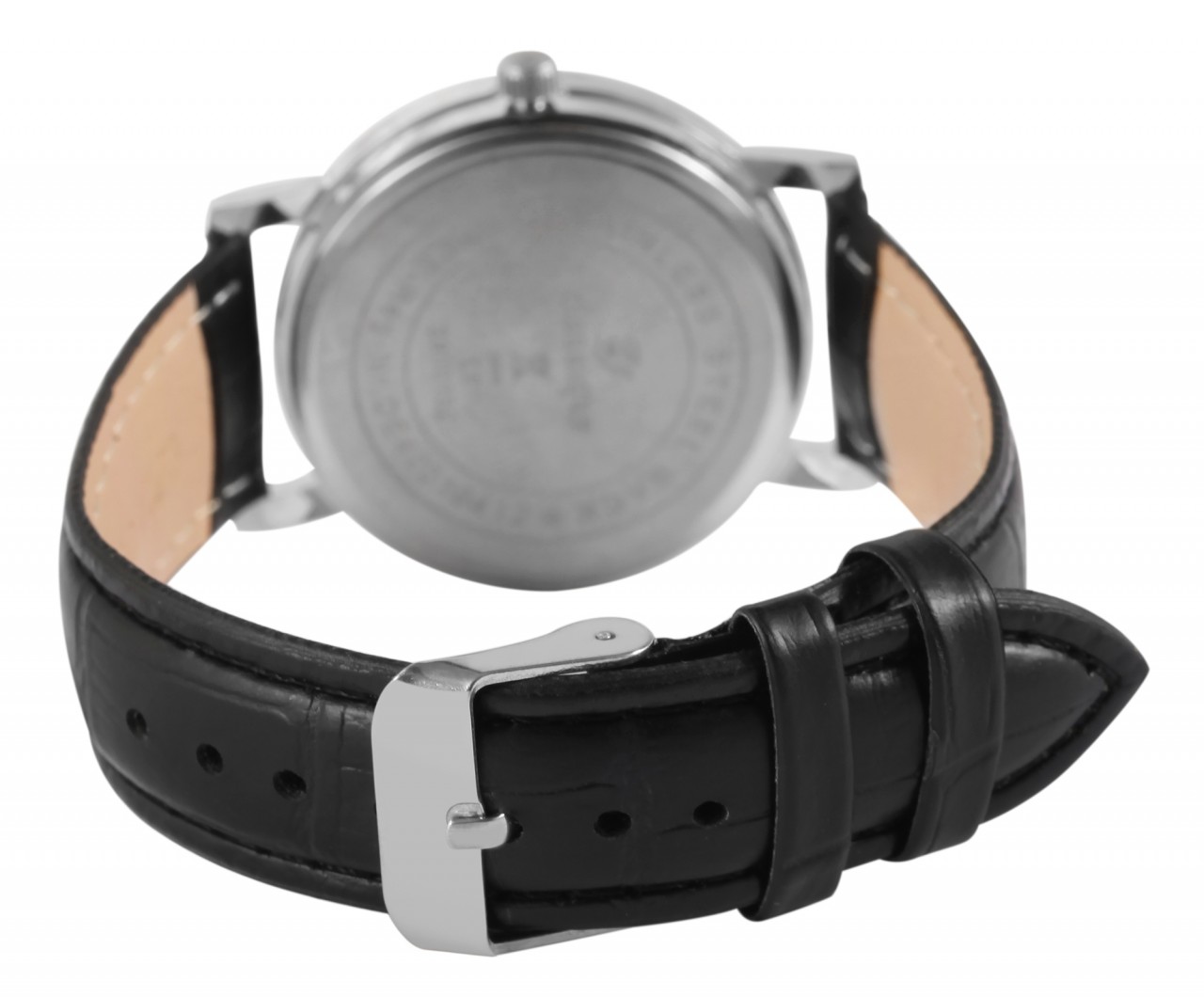 O relógio de pulso analógico masculino de 3 ponteiros da Classique possui um movimento de quartzo de alta qualidade. A pulseira em pele sintética tem 18 mm de largura na alça e estreita 2 mm, de modo que a alça do fecho tem 16 mm. A parte inferior da pulseira é feita de couro genuíno, o que a torna confortável de usar. O relógio pode ser aberto e fechado com uma fivela. O comprimento total do relógio é de 23,5 cm. A caixa de metal com vidro mineral tem um diâmetro de 31 mm e uma altura de 7,5 mm. O fundo da caixa é feito de aço inoxidável. O mostrador simples tem uma cor contrastante…